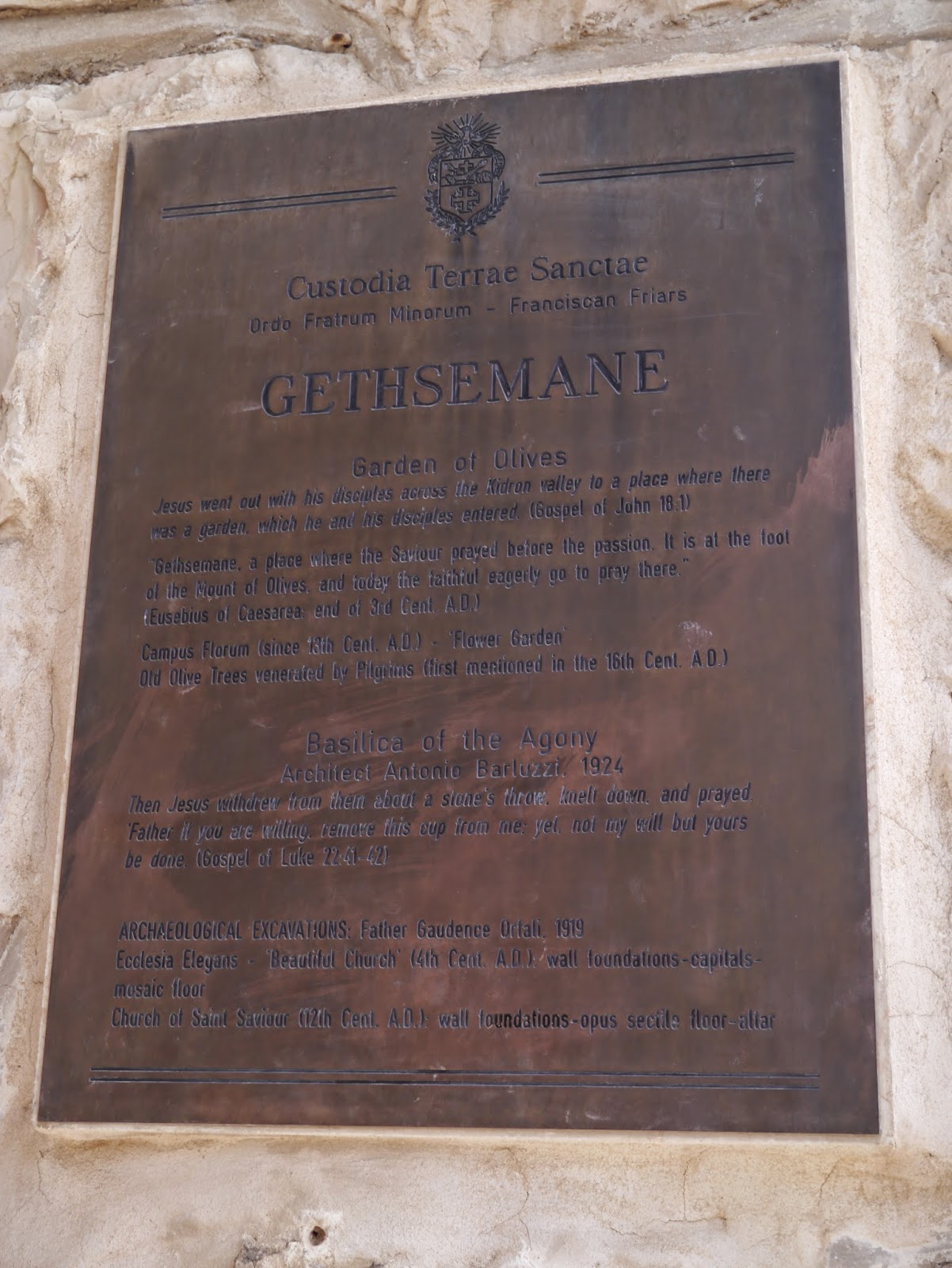Pressant un peu le pas, j’ai avancé jusqu’ au bout du jardin pour atteindre la majestueuse Eglise de Toutes les Nations à la façade portée par des colonnes et au fronton orné de magnifiques mosaïques rappelant des épisodes bibliques.Â