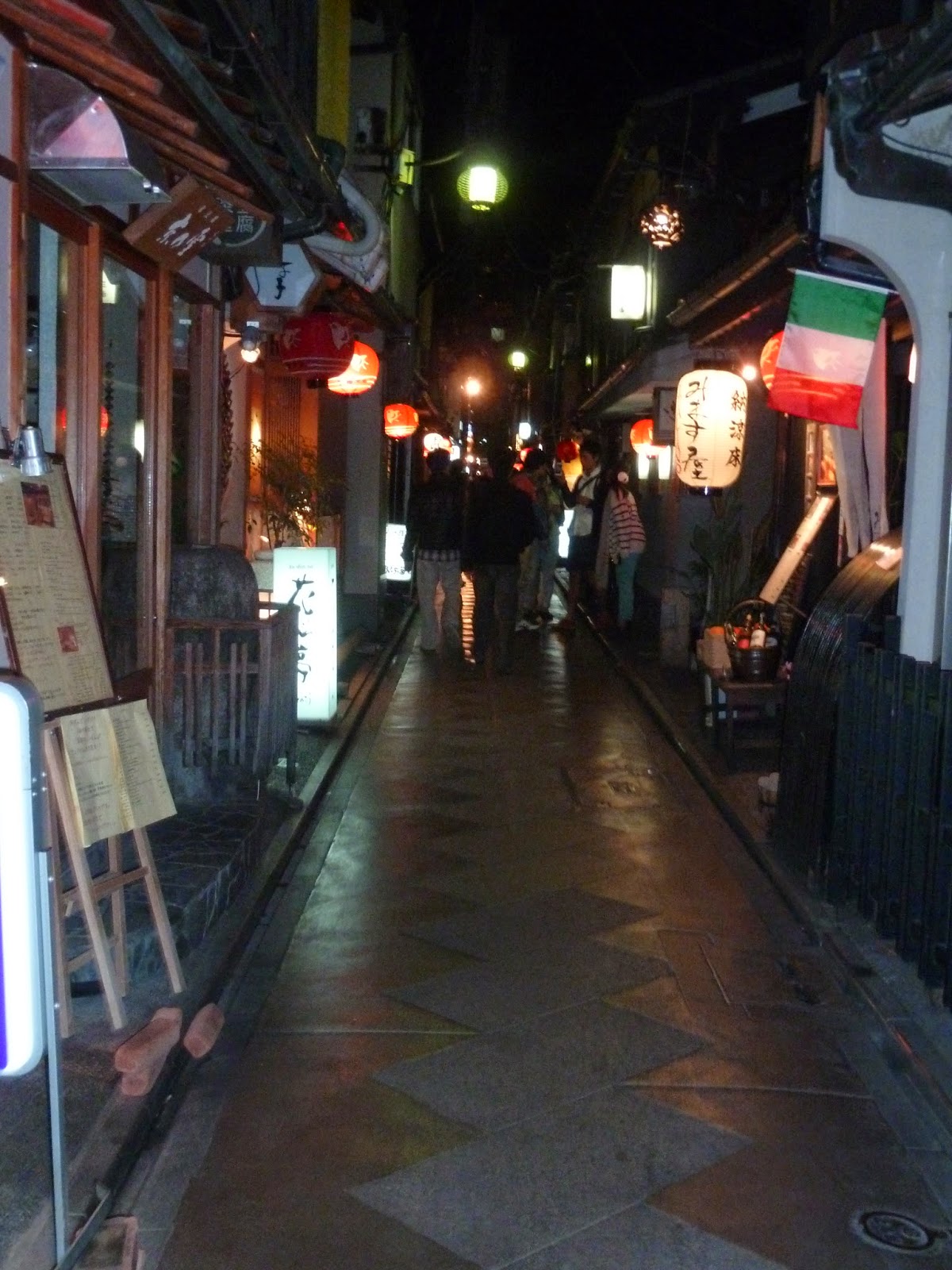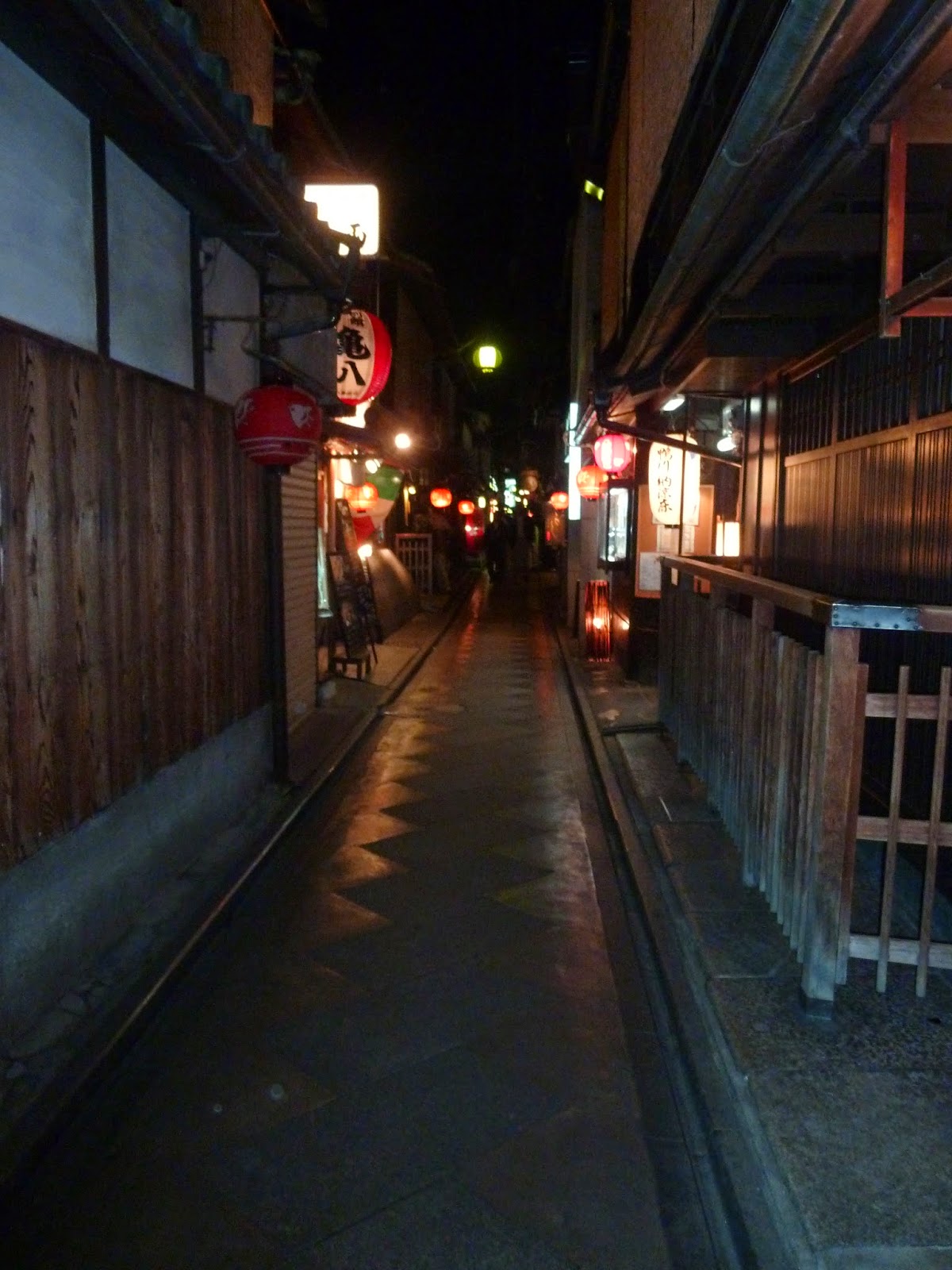 La ballade nocturne dans le quartier de Pontocho est l’occasion rêvée  pour espérer en croiser quelques unes, hâtant le pas, perchées sur leurs hauts sabots en bois.