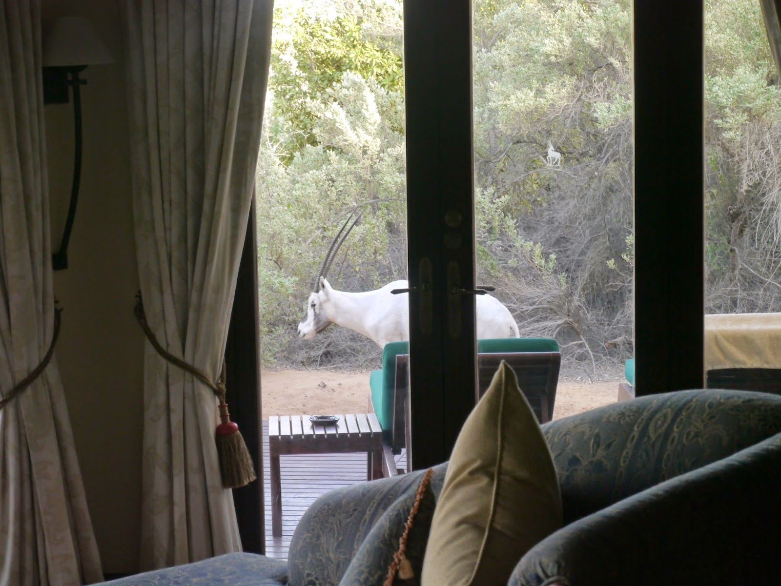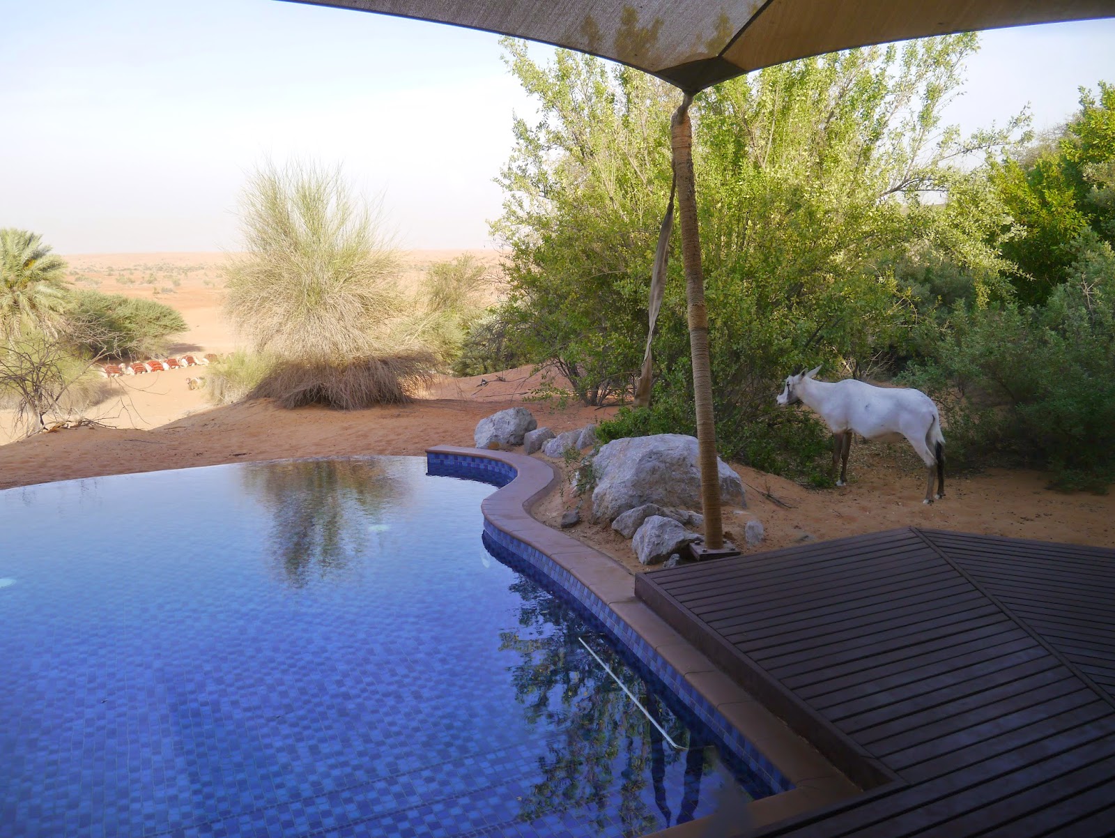 Avec en prime, quelques animaux (oryx essentiellement), pas craintifs le moins du monde, qui n’hésitaient pas à venir au plus près de la piscine pour brouter quelques feuilles !