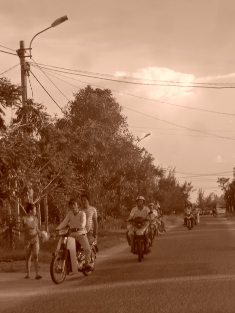 Les locaux vaquaient à leurs occupations, à pied, à vélo, rarement  en pousse pousse, les pêcheurs faisaient accoster leurs embarcations.