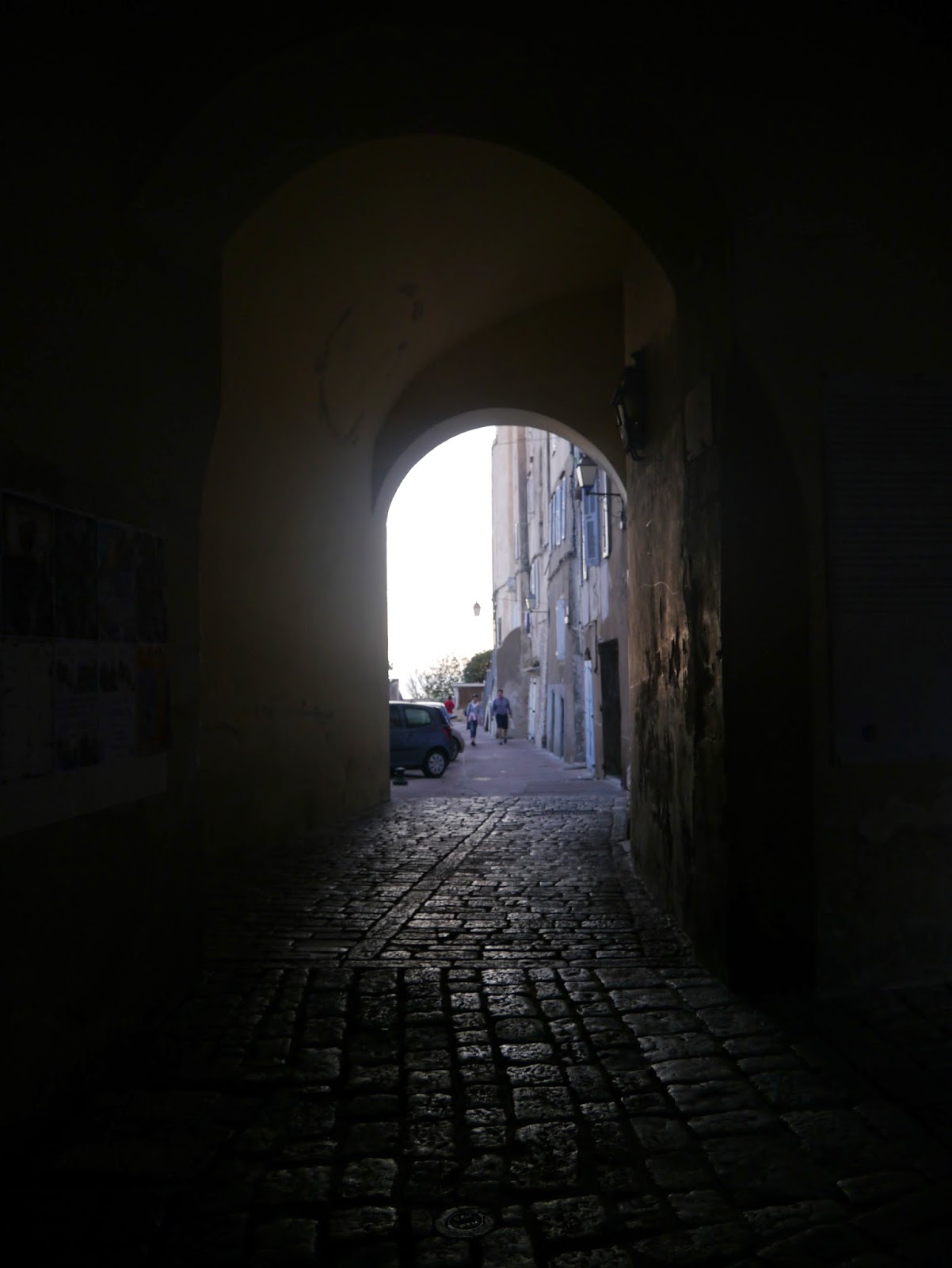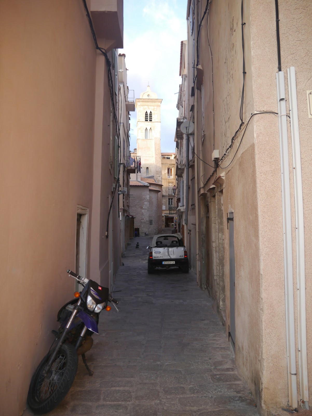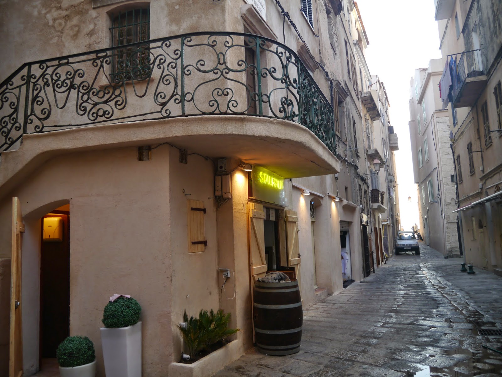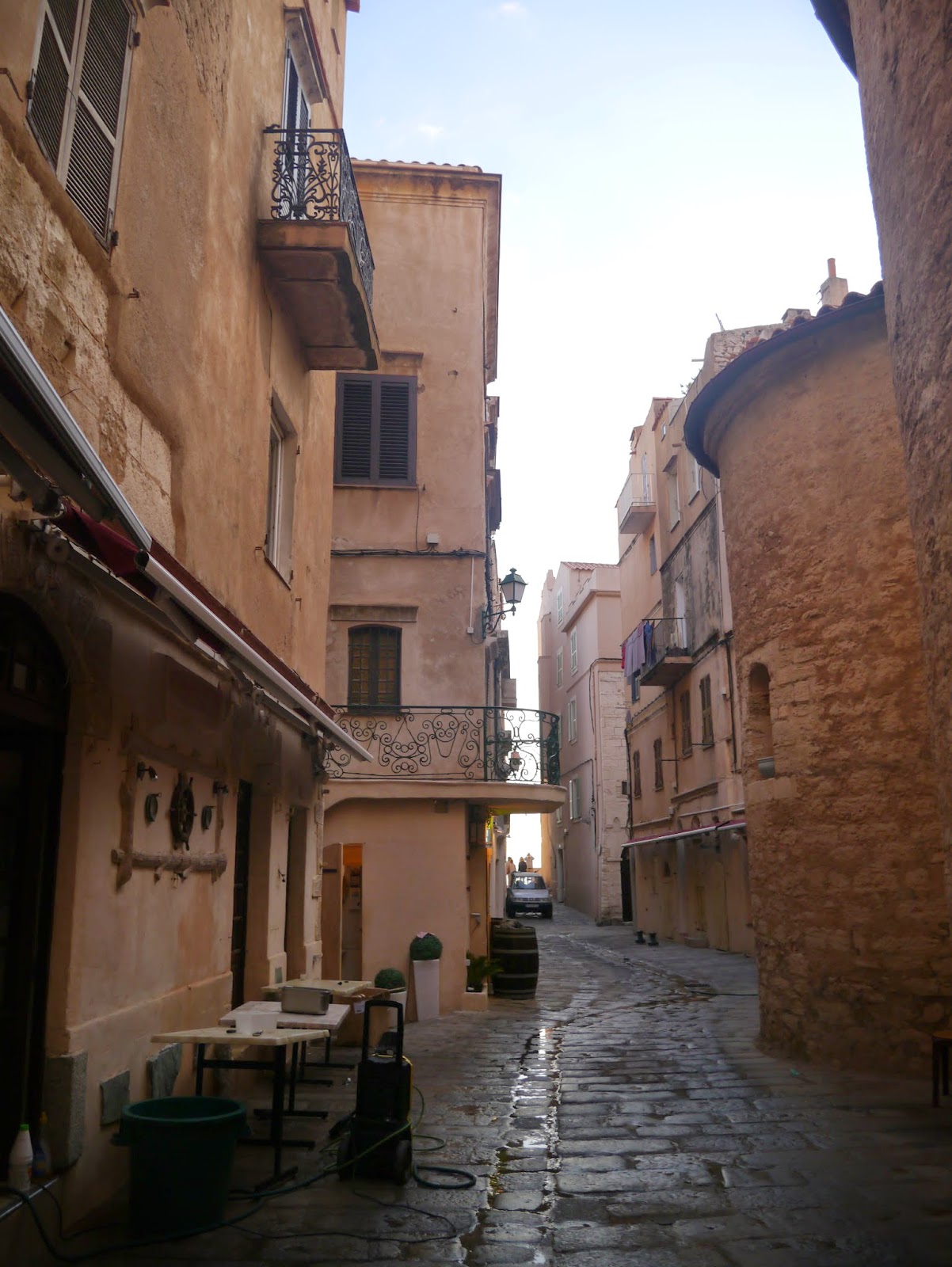 Le coucher de soleil tombait déjà et donnait alors aux étroites ruelles de Bonifacio  une atmosphère toute particulière, non dénuée de charme, et des couleurs incomparables.