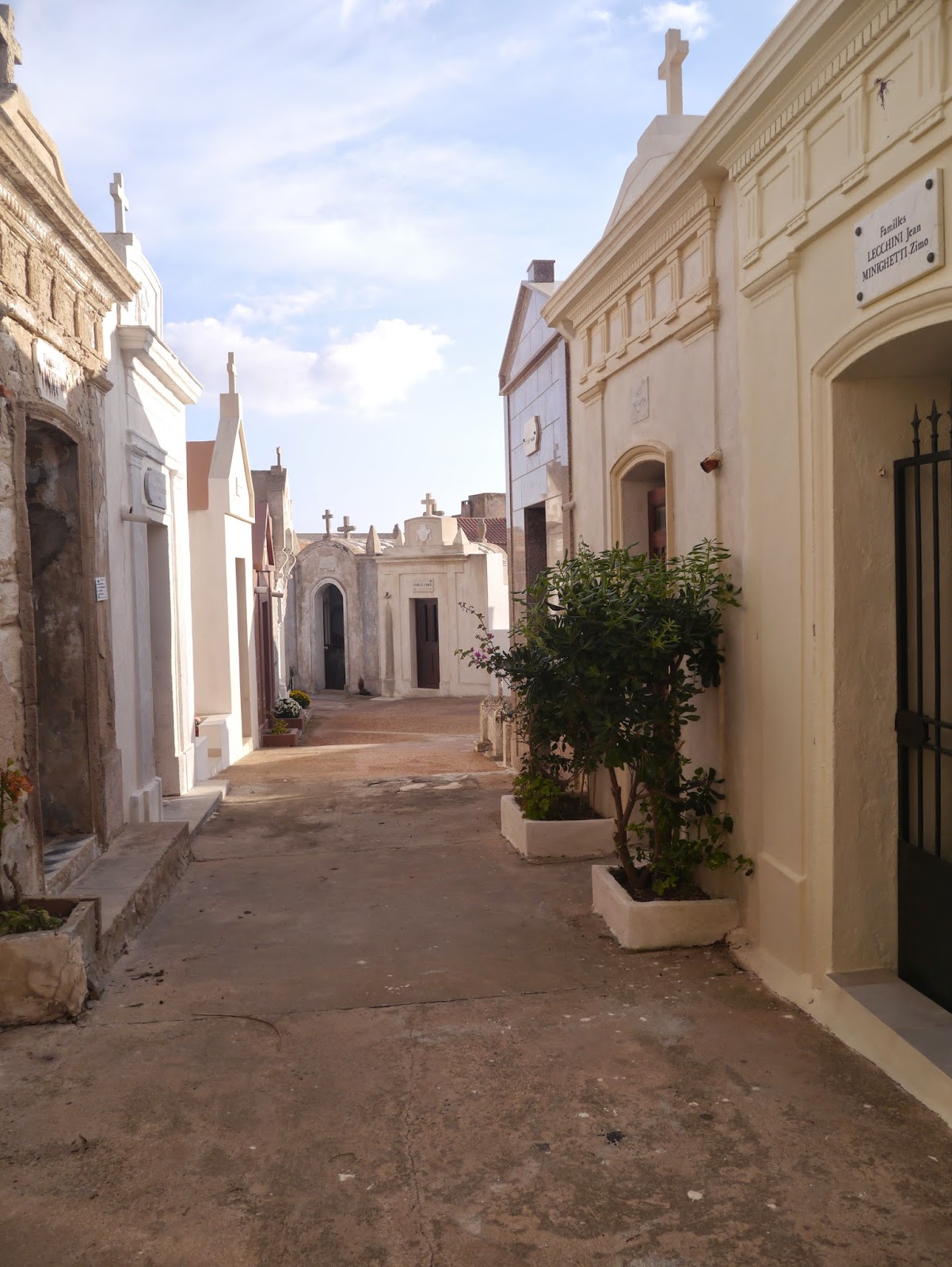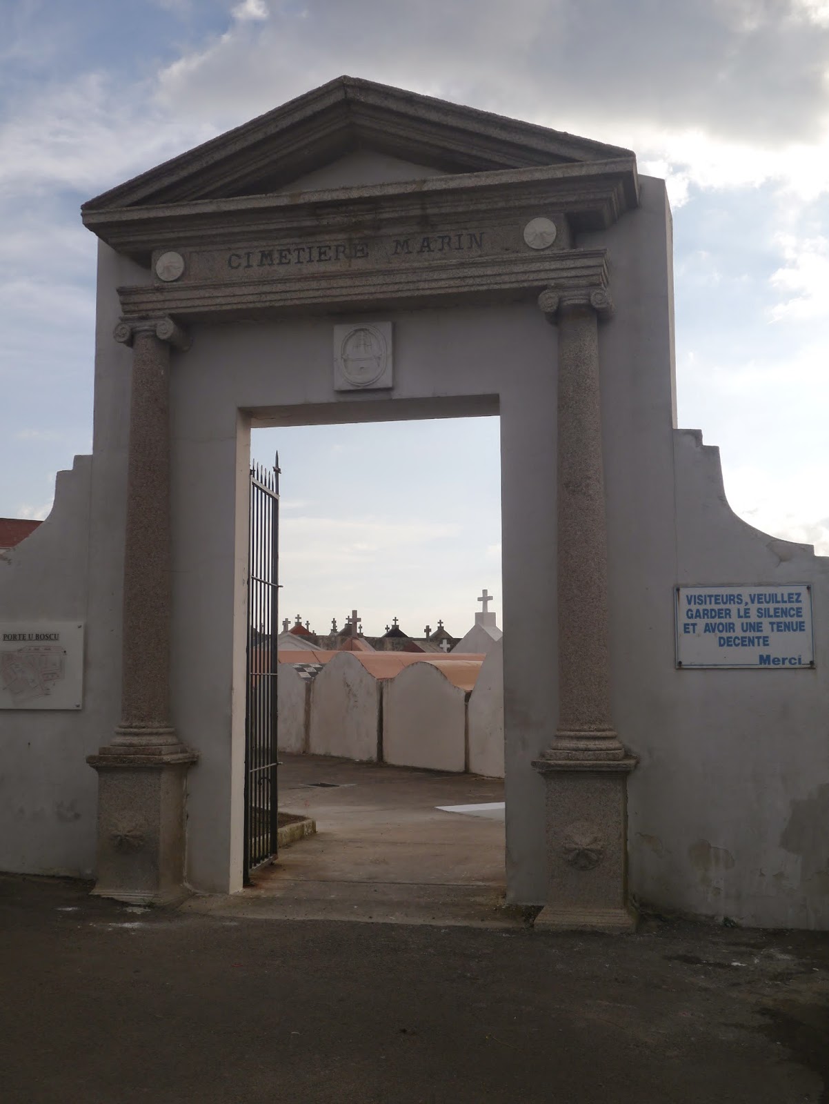 J’y ai retrouvé un petit quelque chose du cimetière marin de Saint Paul sur l’île de la Réunion, que j’ai découvert à l’été 2010. Le coté perché et la parfaite symétrie des tombes en moins.