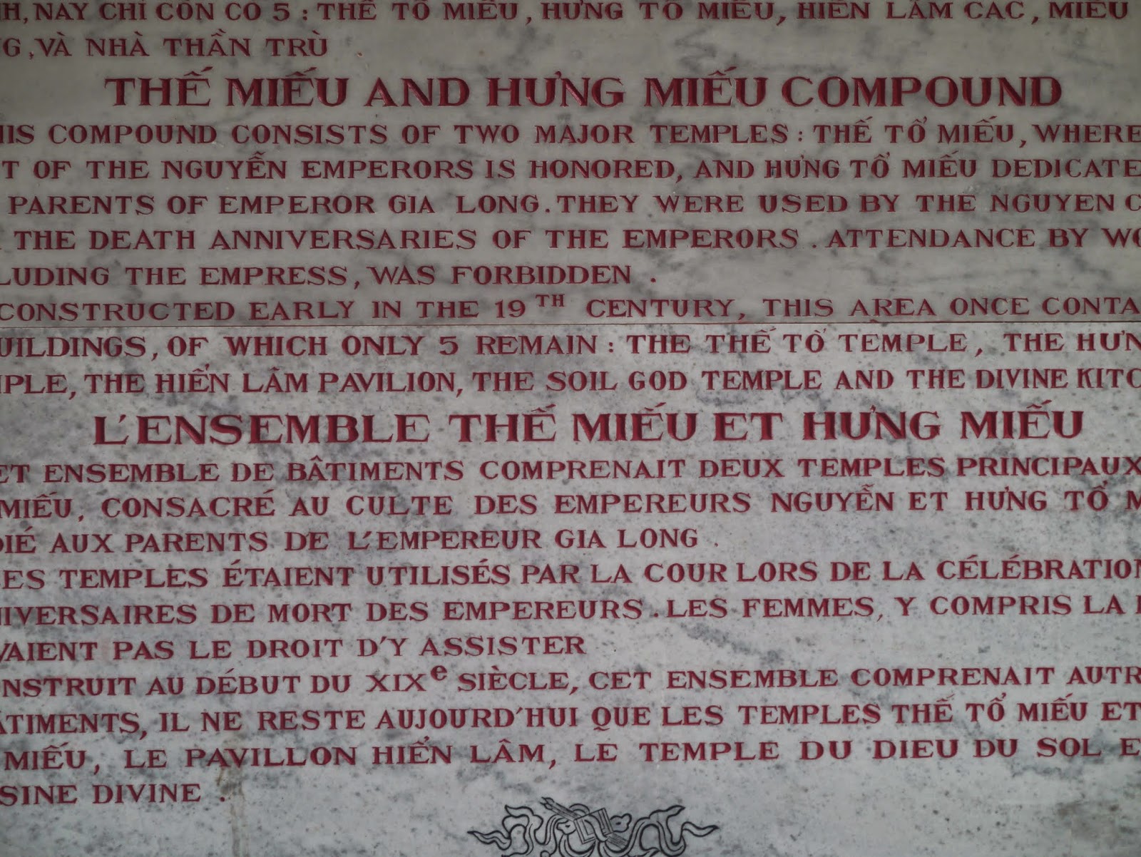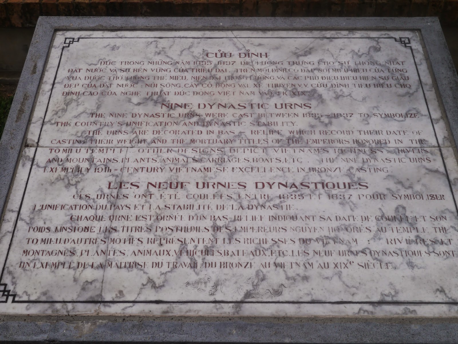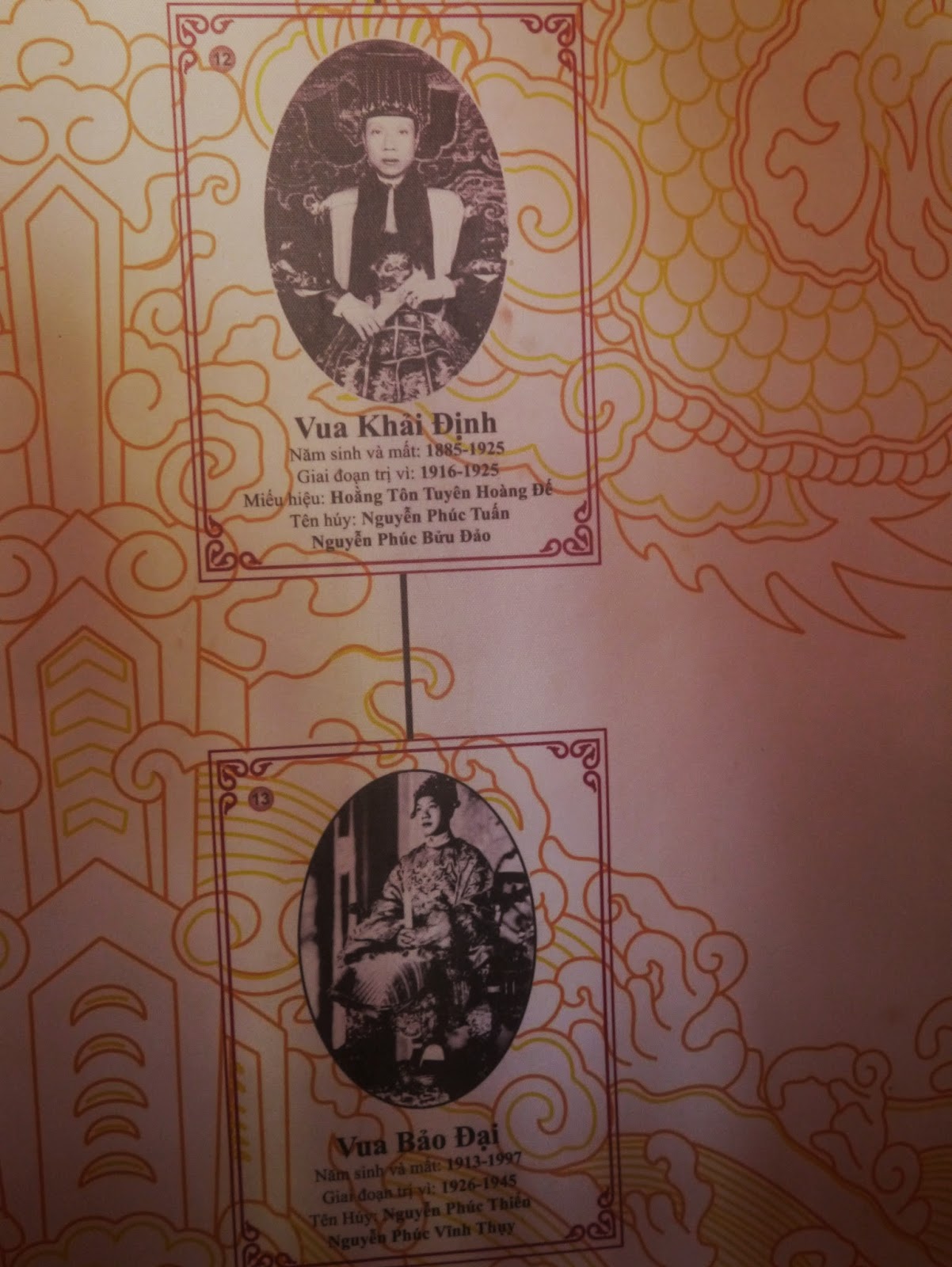 Il s’agit de ceux de Duc Duc, Dong Khanh,Thieu Tri, Khai Dinh, Gia Long, Ming Mang et Tu Duc.