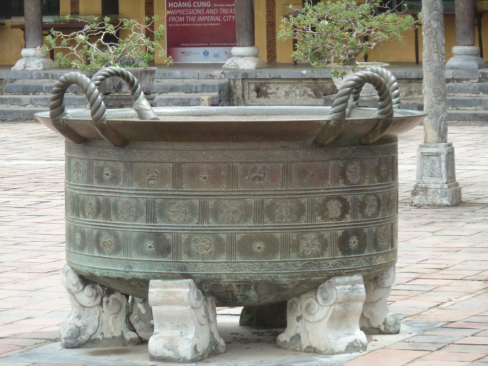 Depuis ce temple, j’avais une très belle vue sur la cour précédant le Pavillon des Splendeurs, l’édifice le plus haut de la citadelle, où se trouvent 9 gigantesques urnes en bronze, gravées de différents symboles, symbolisant le règne de chacun des empereurs de cette dynastie.