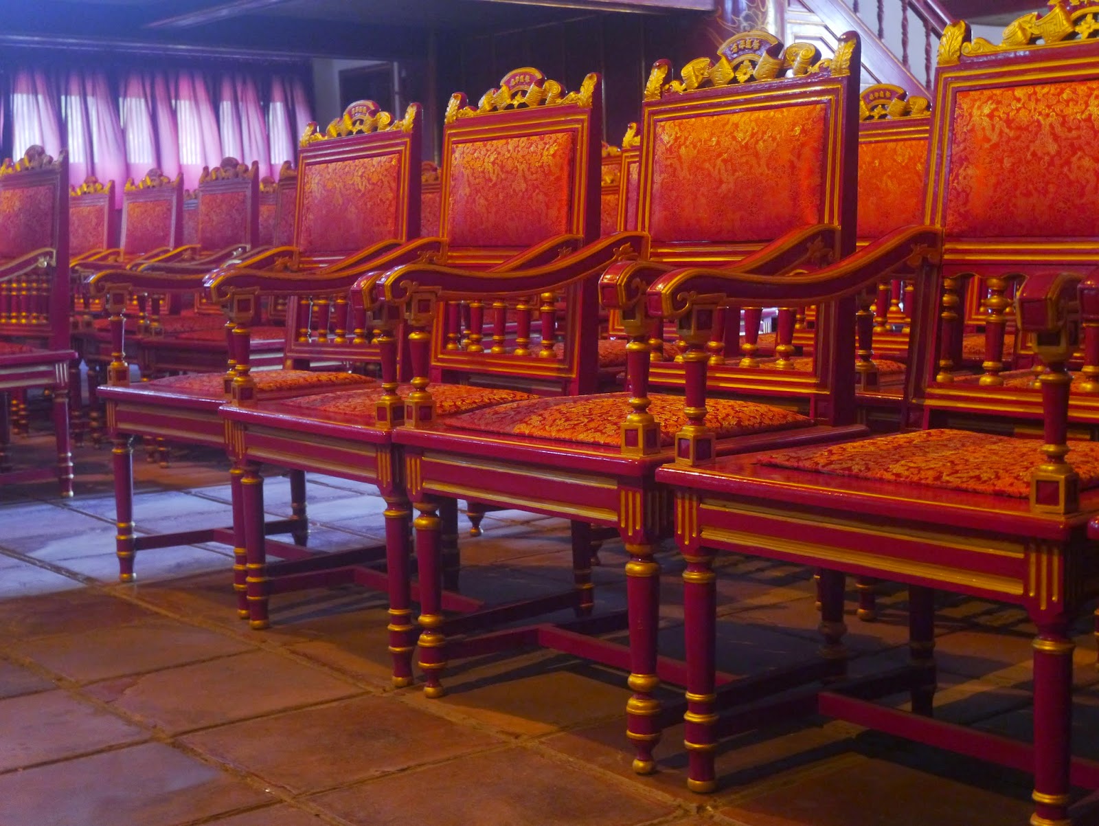 Tout comme découvrir dans une autre cour, l’autre particularité des lieux, à savoir un théâtre impérial à la couleur rouge dominante, aux sièges or et couleur sang ainsi qu’ au plafond orné de constellations.