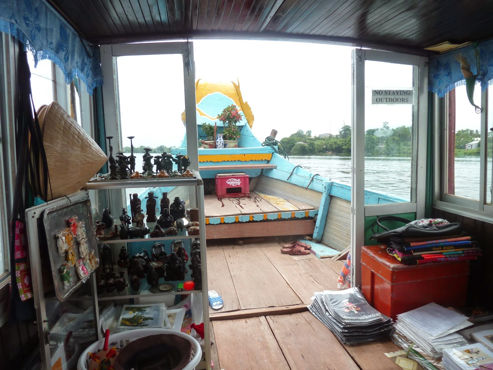 Quant à moi, le sampan sur lequel j’ai embarqué appartenait à une famille qui vivait à bord et proposait, en outre, à ses clients la vente de divers objets fabriqués localement.