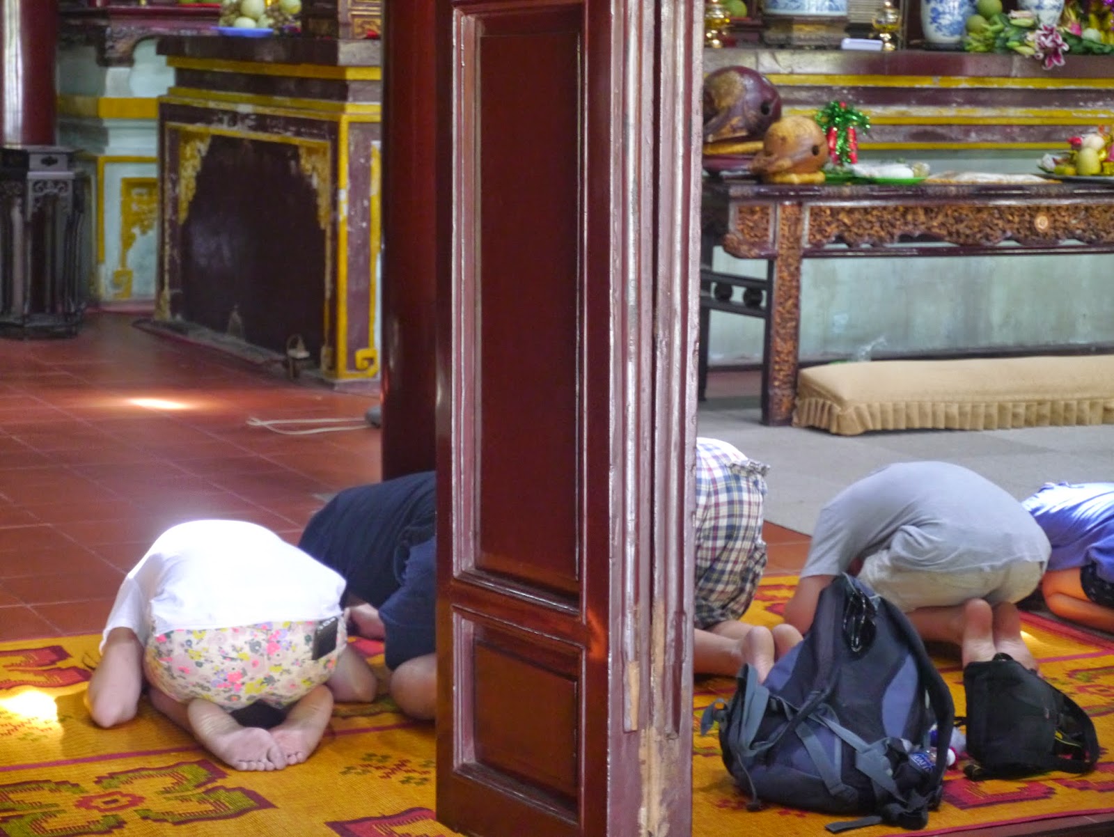( vous n’avez pas oublié comme je vous le disais déjà  ici que la règle numéro un est de se déchausser avant de pénétrer dans tout lieu sacré au Vietnam et en Asie d’une façon générale)
