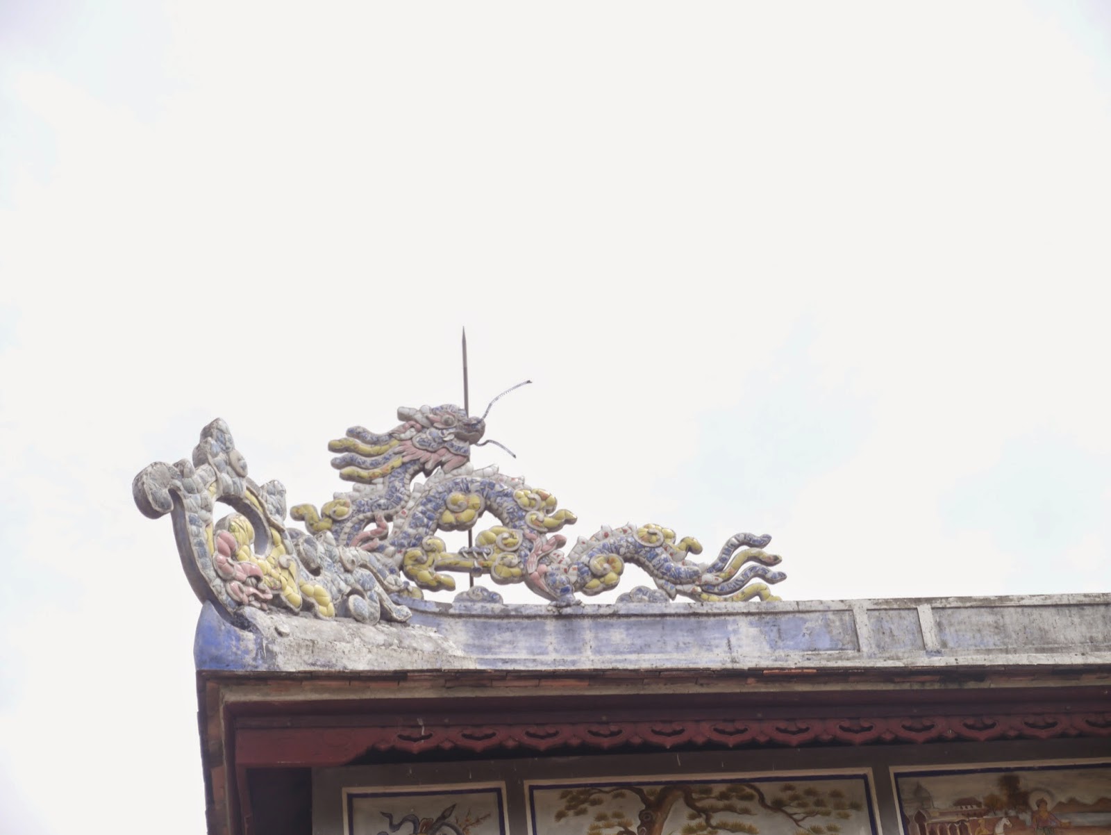 Je ne fus donc pas étonnée d’y trouver, comme j’allais également plus tard le découvrir à Hoi An ou à Saigon, des temples et des maisons communes, emblématiques de cette communauté.
