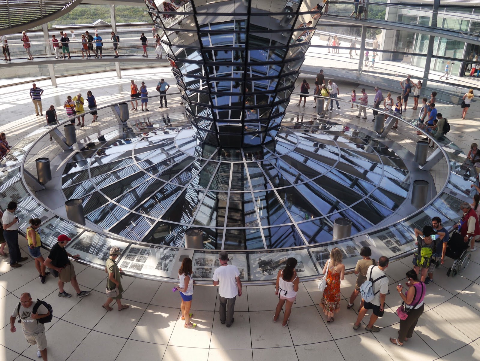 Celle-ci a été imaginée par l’architecte Norman Forster lors de la restauration qu’il fit du bâtiment, après la réunification de la RFA et de la RDA, à la fin des années 1990.