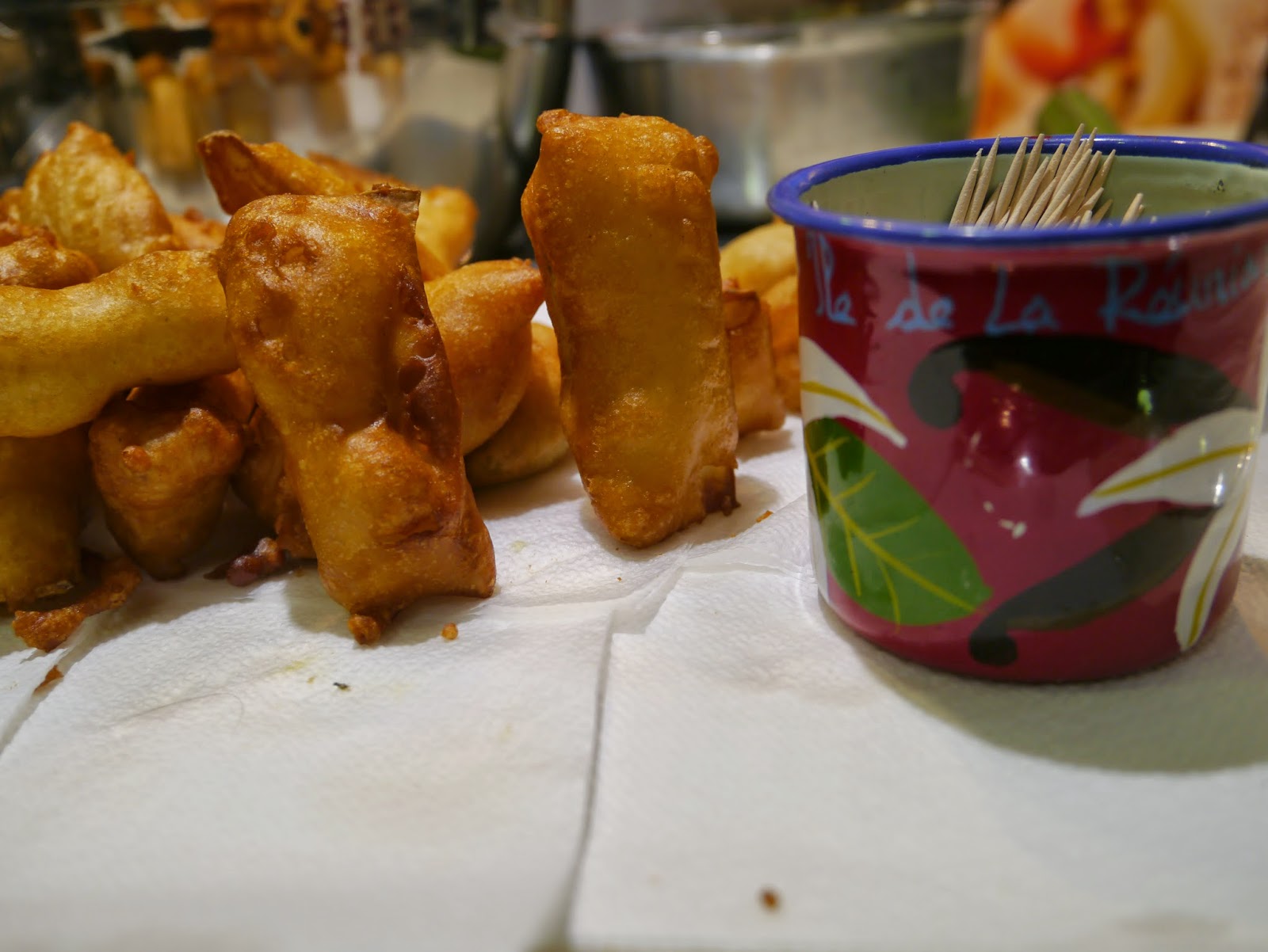 Le chef du restaurant Doudou, dont l’établissement se trouve à La Petite France ( une ville dont je vous ai parlé dans mon post de mardi) préparait des beignets de légumes, à base de courgettes, aubergines ou d’un légume local, que l’on pouvait goûter à volonté ! le