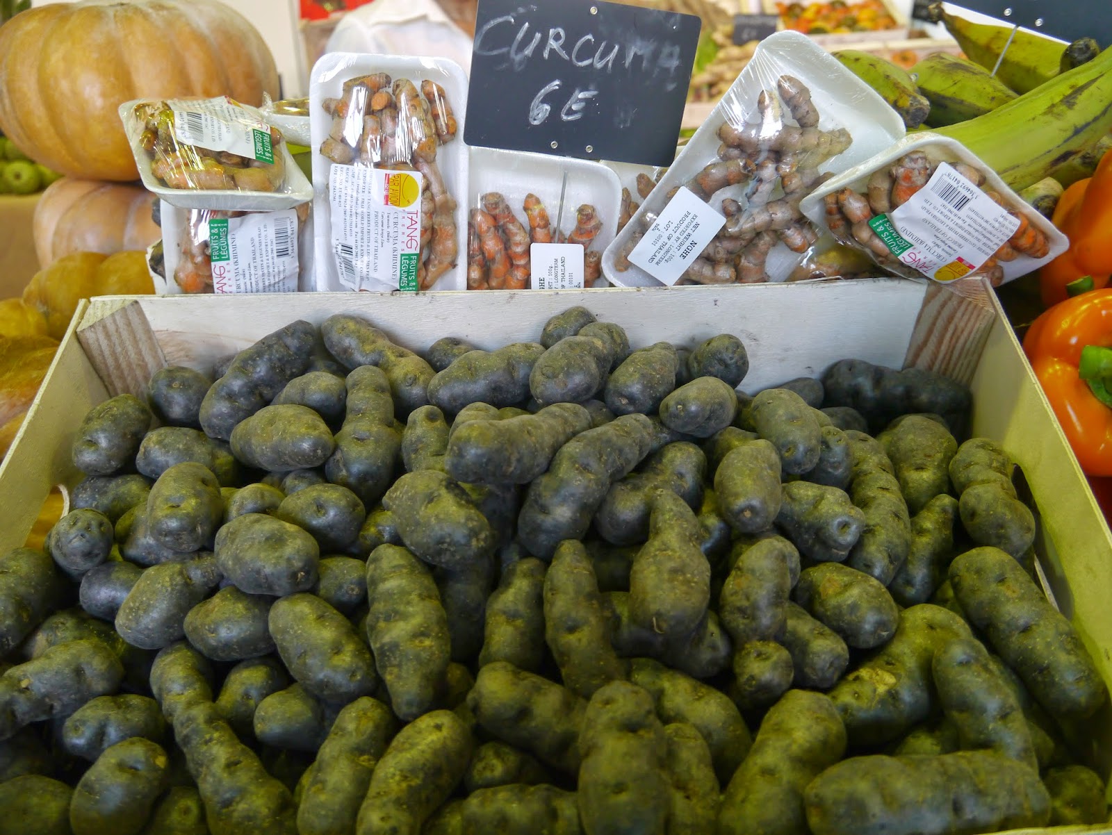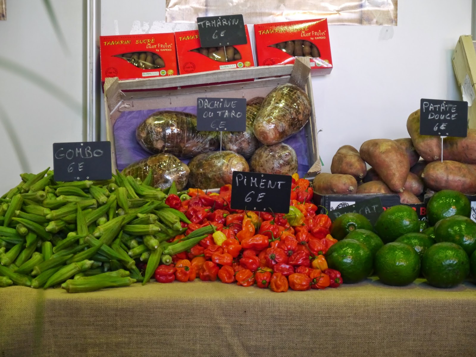 Mais aussi les étals de magnifiques fruits et légumes exotiques qui m’ont notamment permis de découvrir les courgettes jaunes, les bananes roses ou le melon guadeloupéen que je ne connaissais pas.