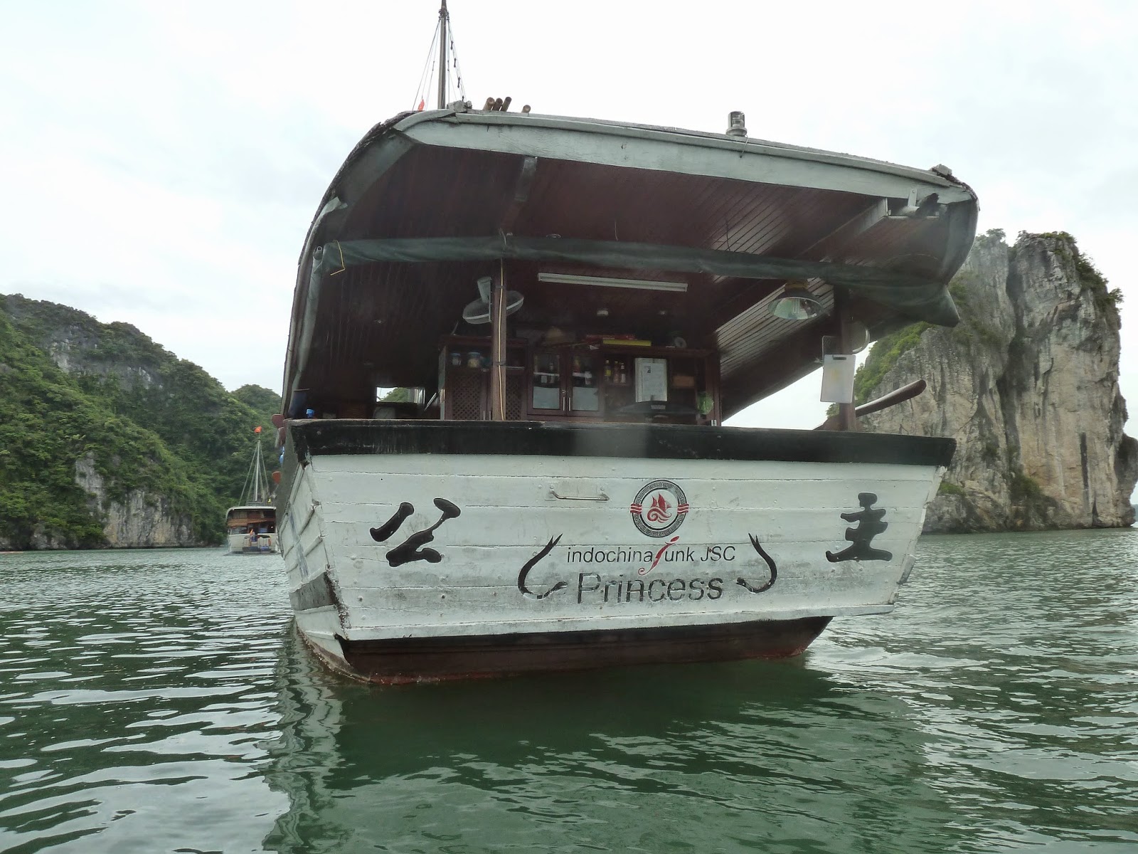 Pourtant, je n’ai pas eu le temps de m’extasier  plus longtemps car l’ embarcation venait de s’immobiliser devant Princess la  petite jonque traditionnelle, de la compagnie Indochina Junk, où j’allais prendre mes quartiers jusqu’au lendemain matin.