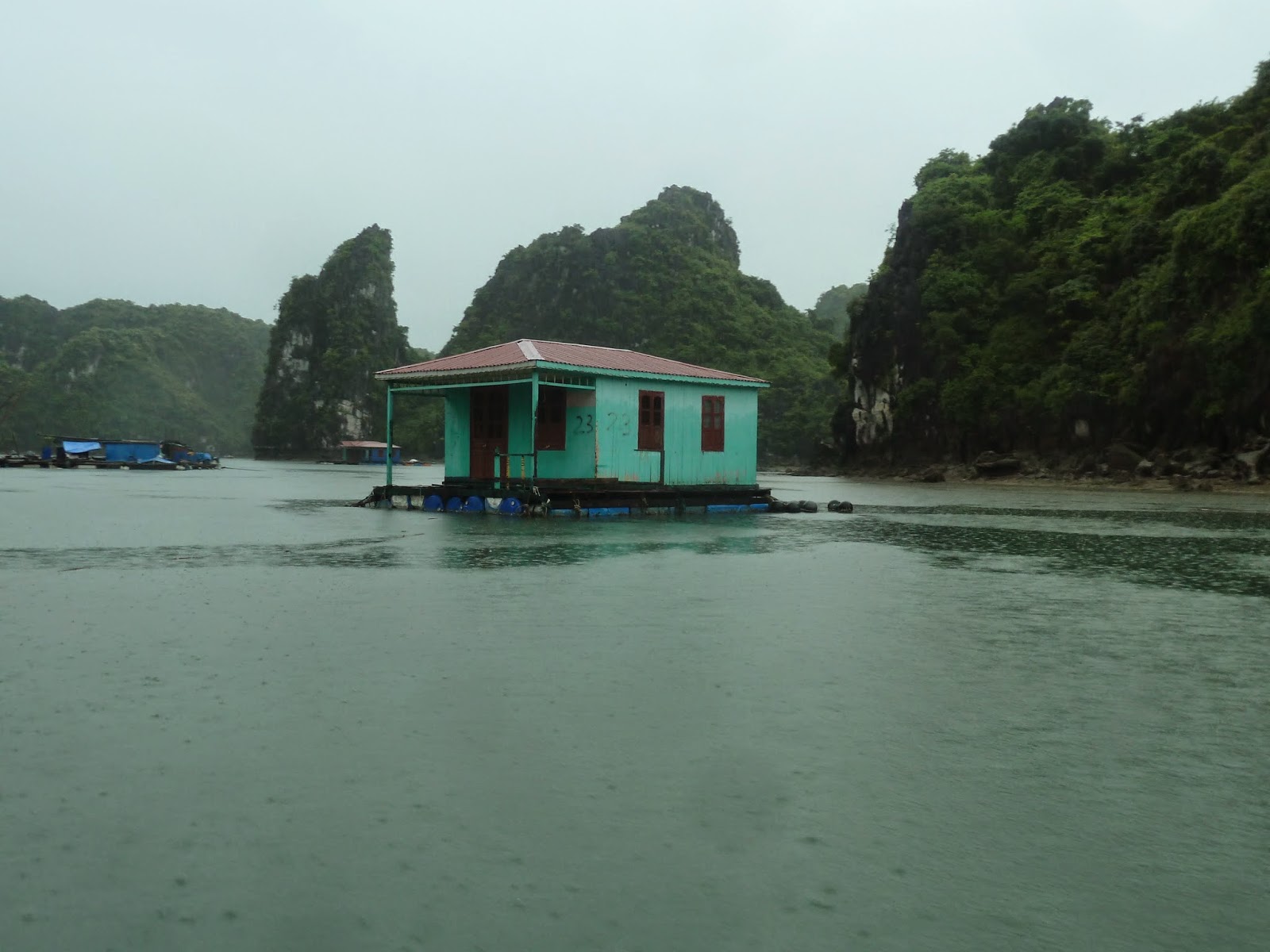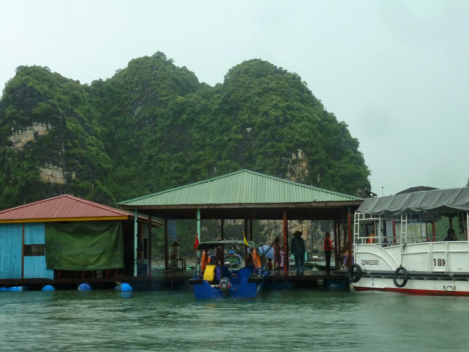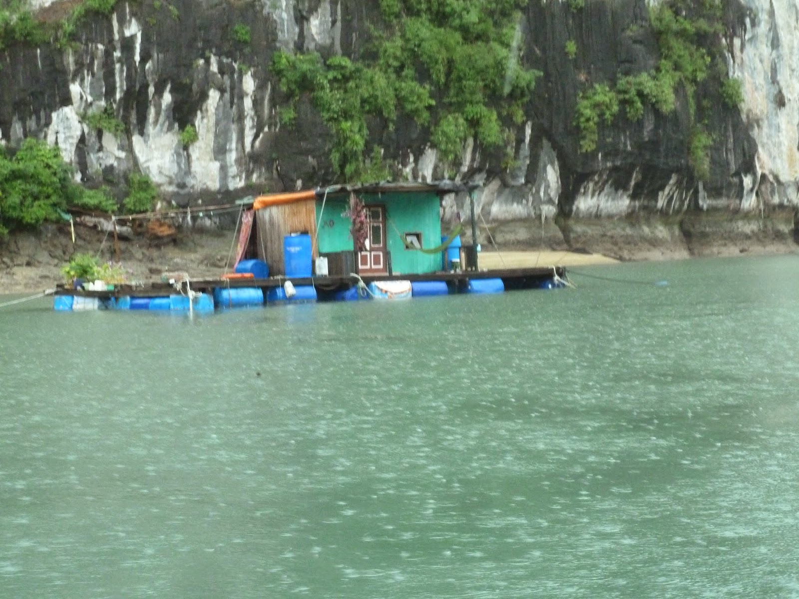 De la Baie d’Along j’ai aussi découvert, le lendemain matin, juste avant d’achever ma croisière et de m’envoler pour Hué, un village flottant de pêcheurs, ayant la particularité d’être bâti sur des flotteurs construit à l’aide de gros bidons vides.