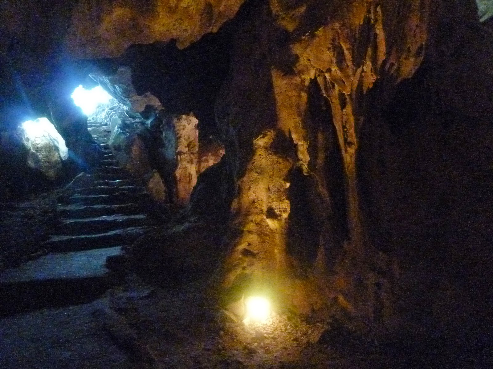 Après avoir accosté sur sa petite plage, où quelques touristes bronzaient déjà , j’ai du, pour accéder à l’entrée de la grotte, gravir des marches qui, sous ces températures caniculaires, me parurent interminables.