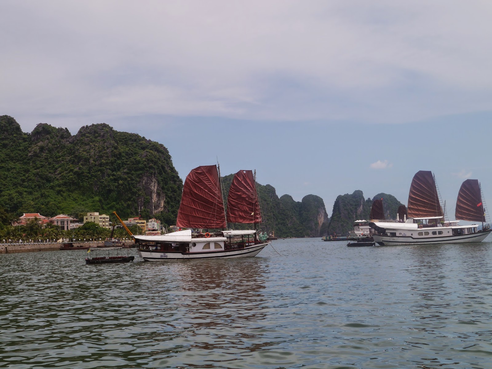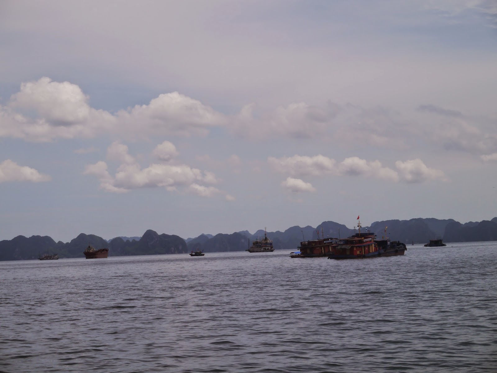 Sous un ciel bleu où le soleil irradiait, j’ai pu assister à un balai incessant de jonques et gros bateaux, qui rentrant à quai avec son lot de touristes, qui se dirigeant vers la baie .
