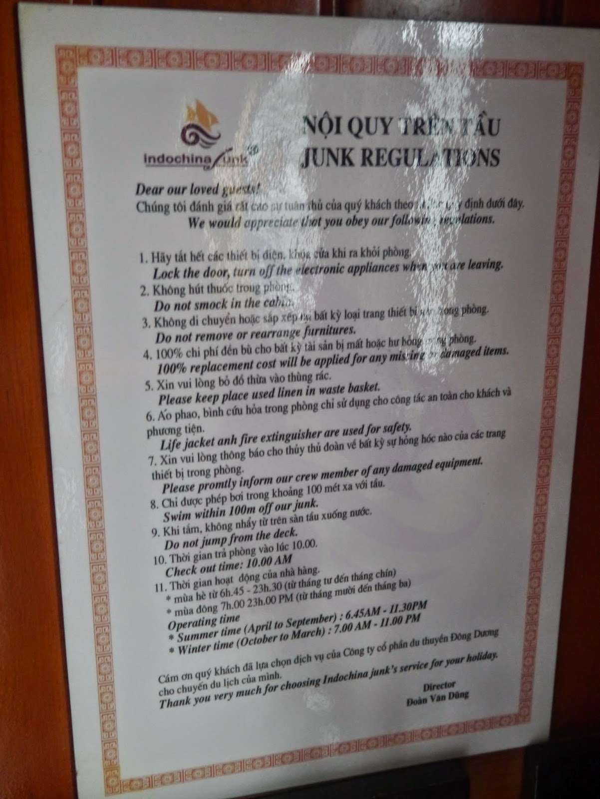 Pourtant, je n’ai pas eu le temps de m’extasier  plus longtemps car l’ embarcation venait de s’immobiliser devant Princess la  petite jonque traditionnelle, de la compagnie Indochina Junk, où j’allais prendre mes quartiers jusqu’au lendemain matin.