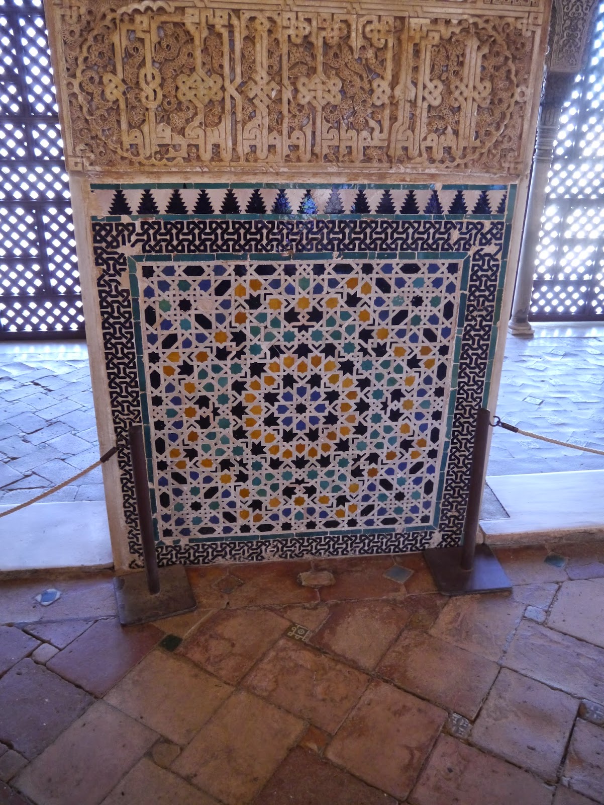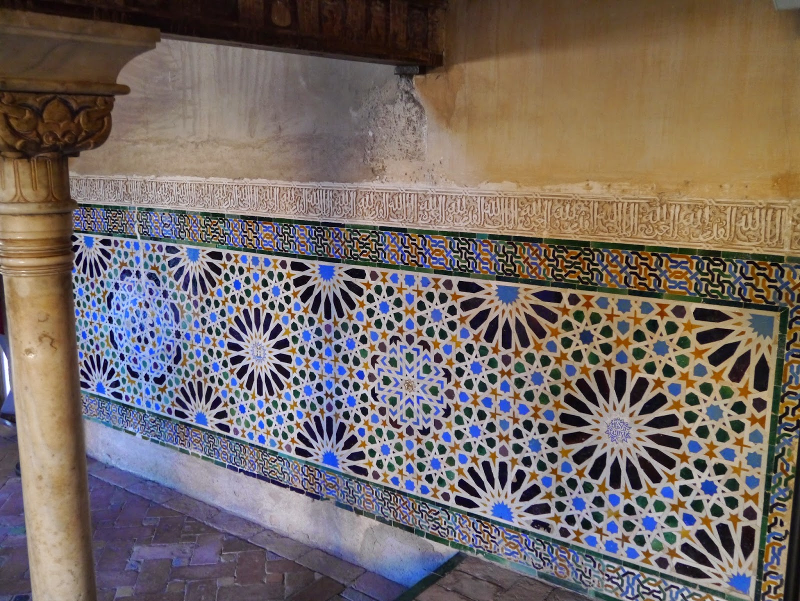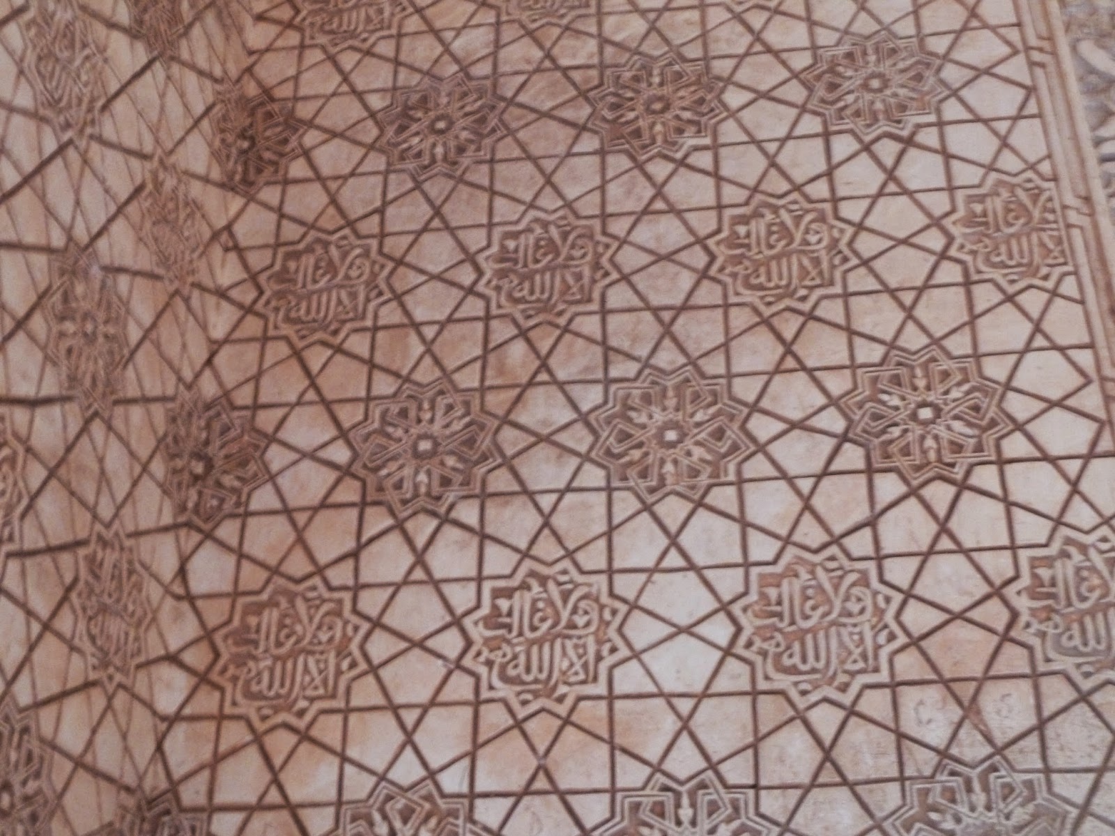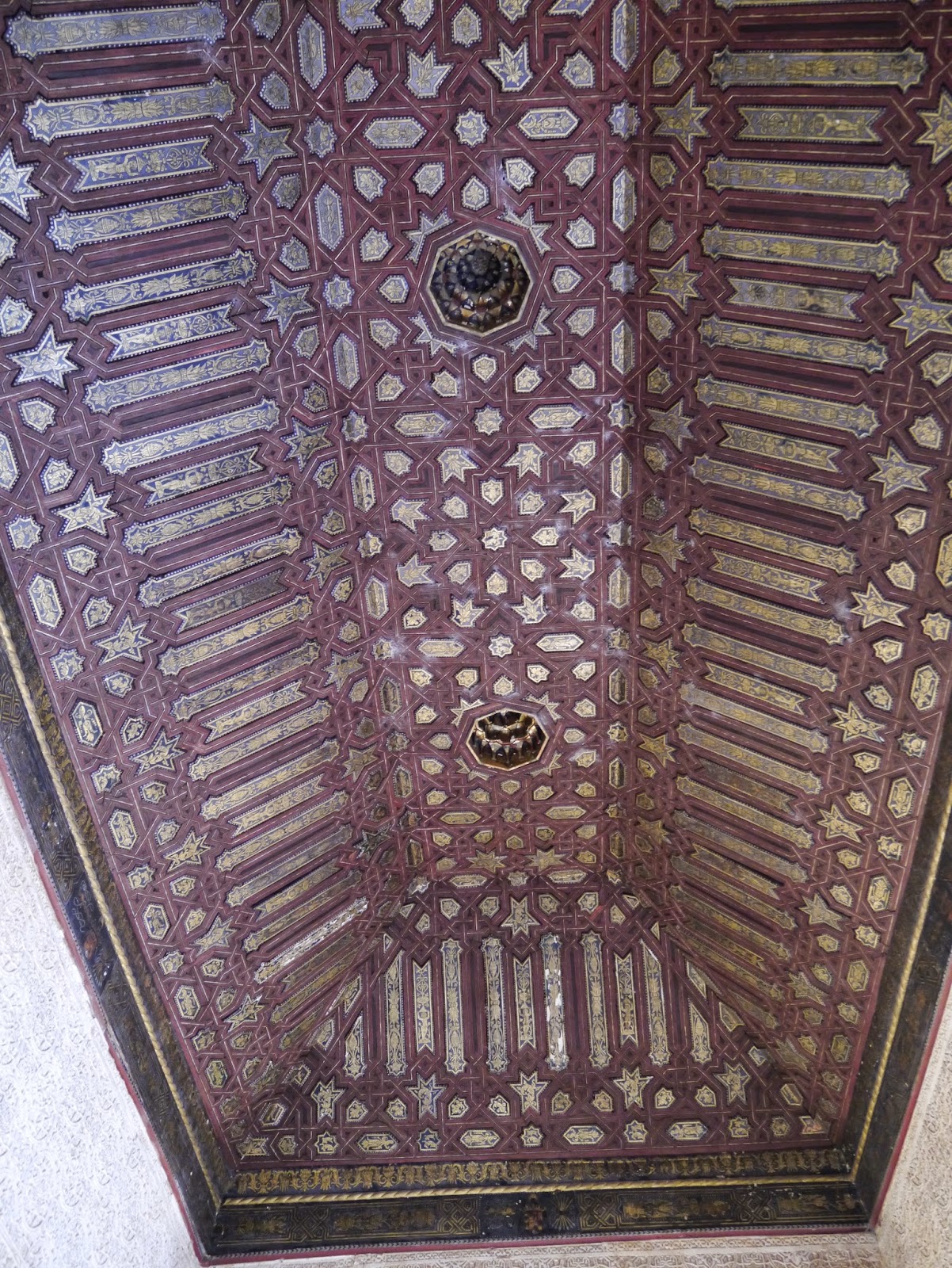 J’y ai découvert une richesse décorative exceptionnelle : magnifiques mosaïques ornant les différentes cours et galeries, plafonds en bois, architecture dentelée ainsi que présence de  nombreux bassins.