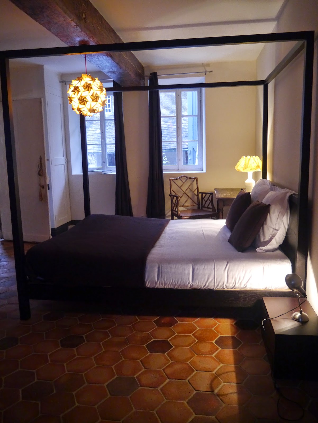Et enfin la Chine : pour son nom, une criante invitation au voyage, son lit à baldaquin annonciateur de romantisme, ses poutres en bois, ses tommettes, son mobilier de style colonial et moderne et sa vue sur le patio qui m’avait hypnotisée à l’arrivée.