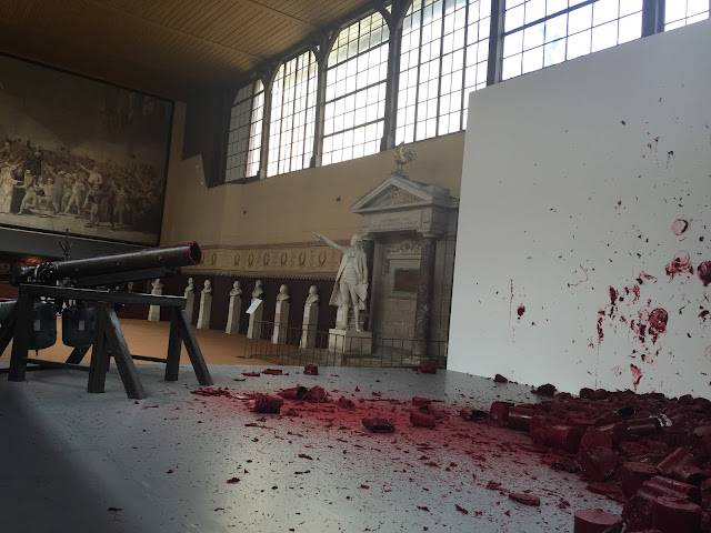 Voila ce à quoi j’ai pensé en découvrant son canon, les projections rouges sur les murs et ce qui pour moi correspond à des lambeaux de chair humaine.