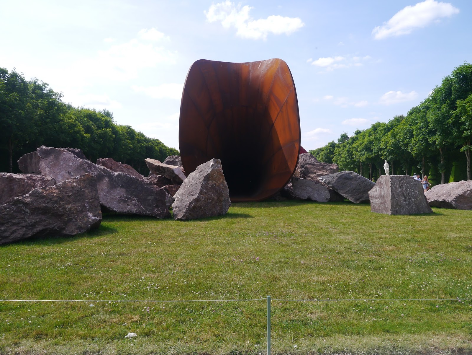 Hier après midi, au terme d’une courte échappée dans l’antre du Roi Soleil, Le Bosquet de l’étoile, la Terrasse, la Grande Perspective, le Parterre d’Eau, ainsi que la Pelouse du Char d’Appolon, m’ont permis de découvrir l’exposition en plein air d’Anish Kapoor.