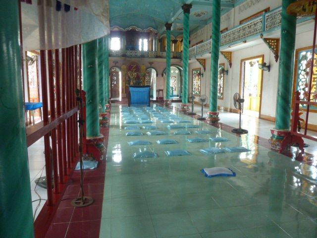 Tay Ninh ne figurant pas à mon programme de visite c’est au temple de Cai Be que je me suis arrêtée car son architecture, elle aussi syncrétique, est tout à fait représentative du célèbre temple-cathédrale de Tay Ninh (et donc des constructions caractérisant cette religion).