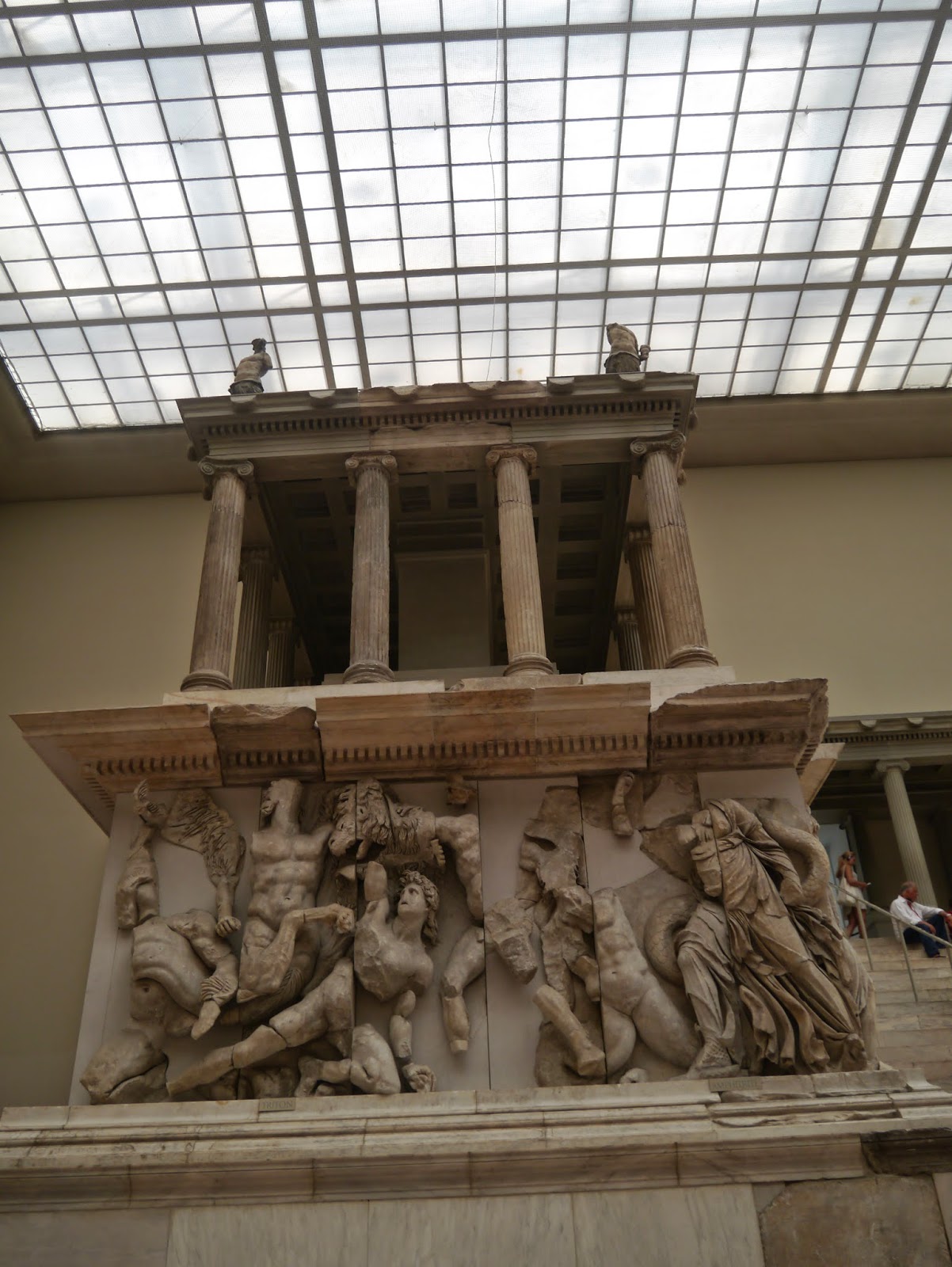 Le monumental autel, en marbre, de Pergame (ancienne cité grecque  aujourd’hui située en Turquie),  avec ses escaliers, sa cour à  colonnes, et sa frise occupant les murs de la première salle du musée, m’a tout bonnement époustouflée.