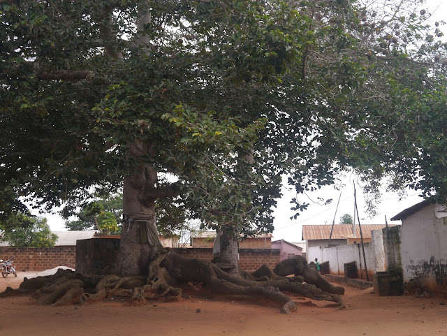 Dans le quartier de Xetsiavi, j’ai tout d’abord été frappée par les fétiches femelle et mâle avant de découvrir celui constitué par les majestueux arbres, mâle et femelle, entourés de linge blanc, qui protègent les jumeaux.