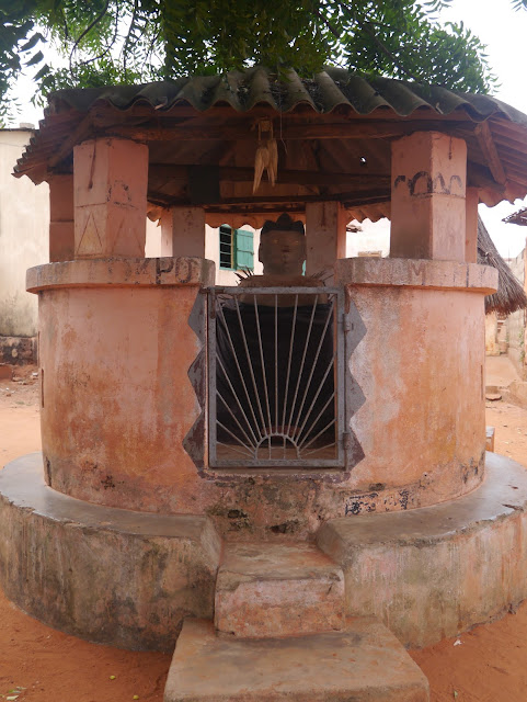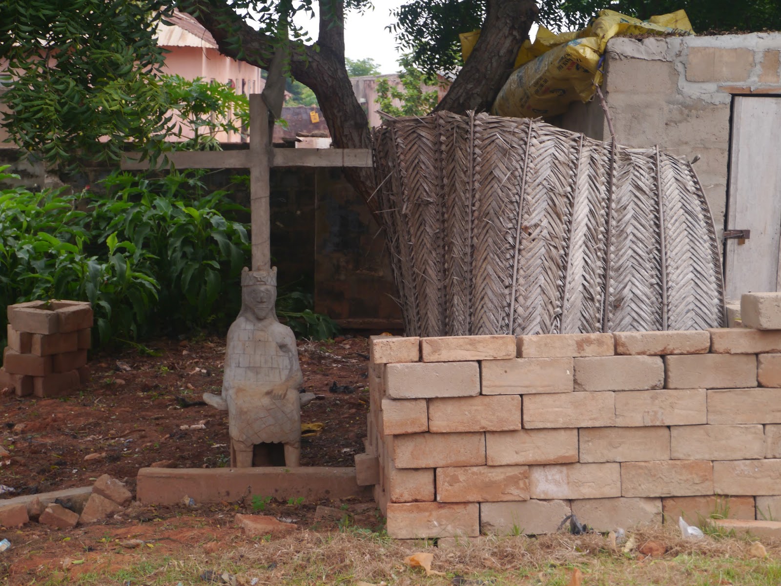 Puis dans le quartier de Galapé, non loin de la maison royale, j’ai pu découvrir un fétiche legba, que l’on reconnait, notamment, à sa virilité affichée.
