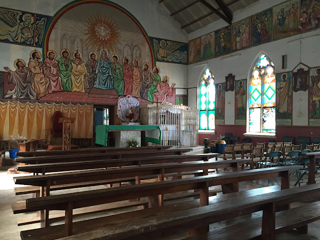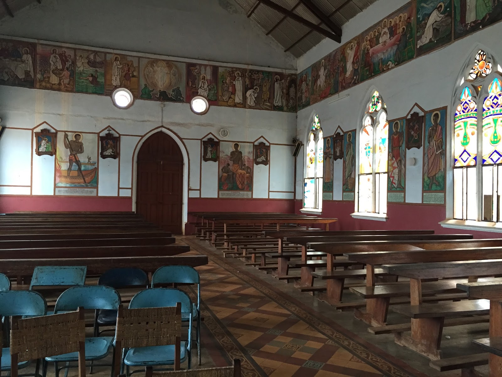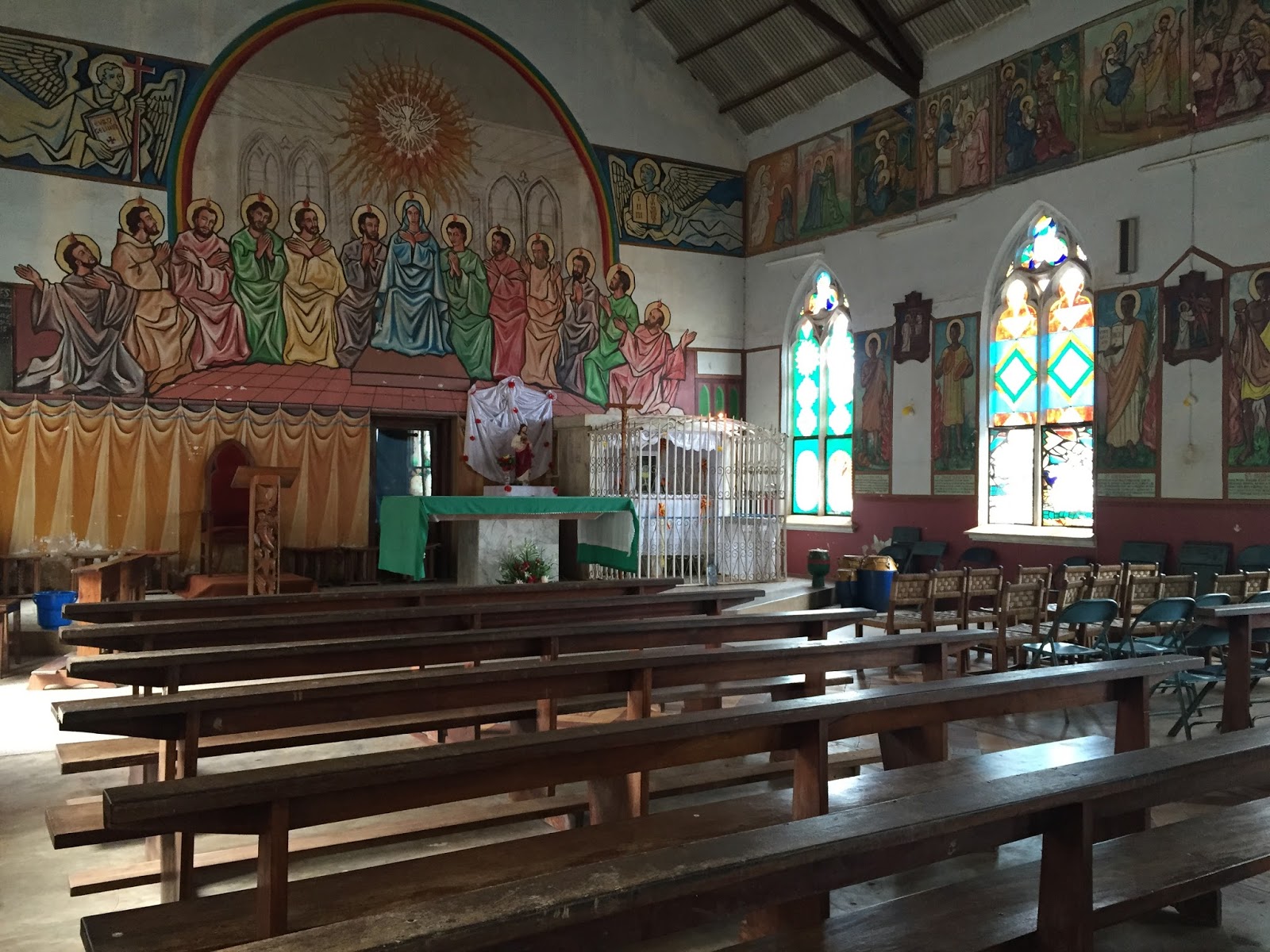 Bâti en 1910, cet imposant édifice religieux se singularise par ses superbes vitraux colorés ainsi que ses représentations de la Sainte Trinité, des apôtres habituels outre celles figurant les saints martyrs d’Ouganda !
