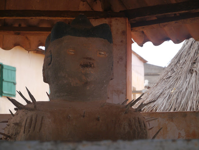 Pour ce qui est des fétiches (exposés à l’air libre ou dans de petits abris et devant lesquels sont très souvent posées des offrandes) : certains vous interpelleront d’emblée tandis que vous pourrez passer à côté d’autres faute pour vous d’être accompagnés d’un guide qui vous les montrera et surtout vous en expliquera le sens.
