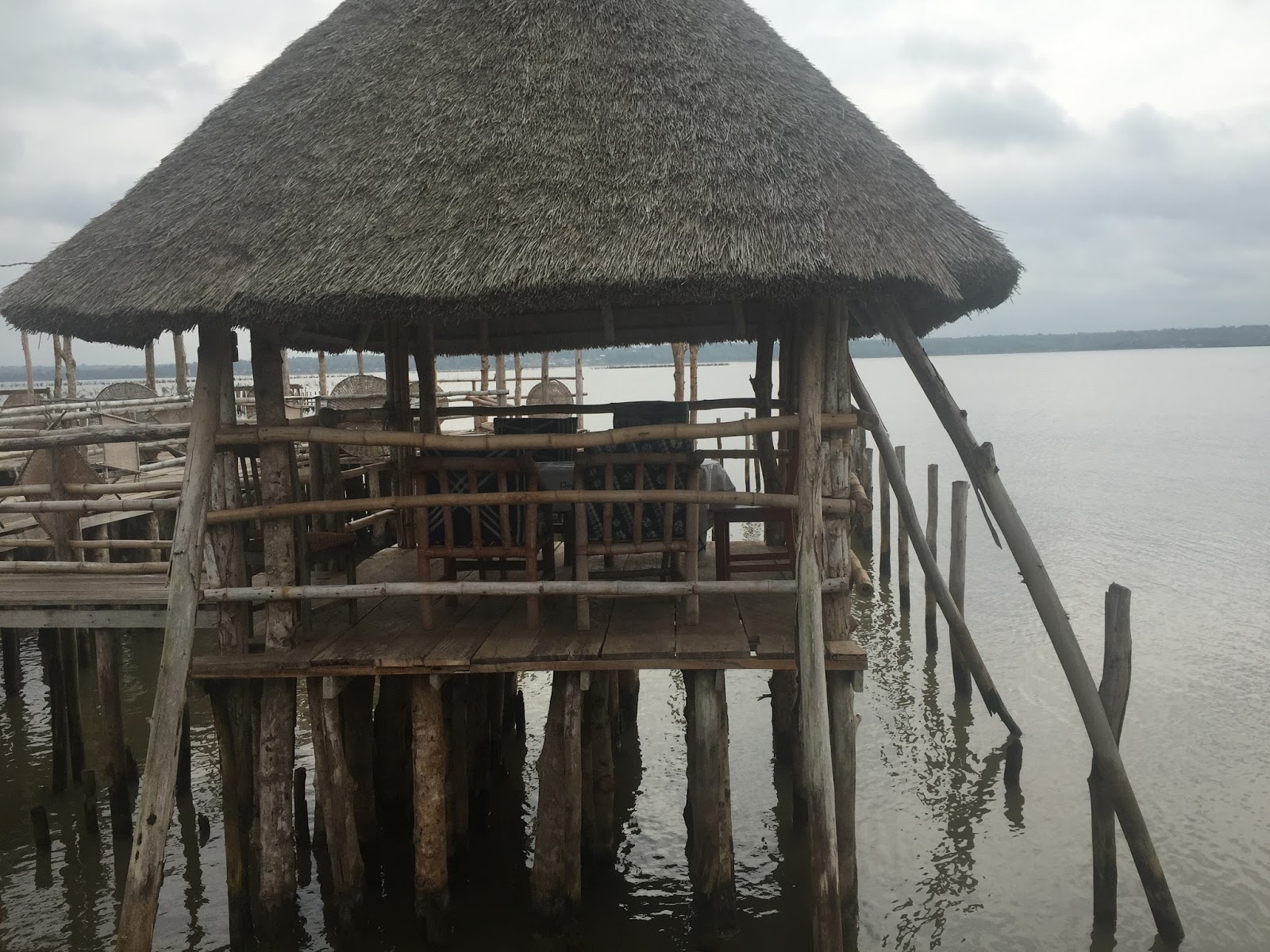Une perle qui n’est rien d’autre que le restaurant, tout en bois et décoré de vanneries, construit sur pilotis au dessus du lac Ahémé.