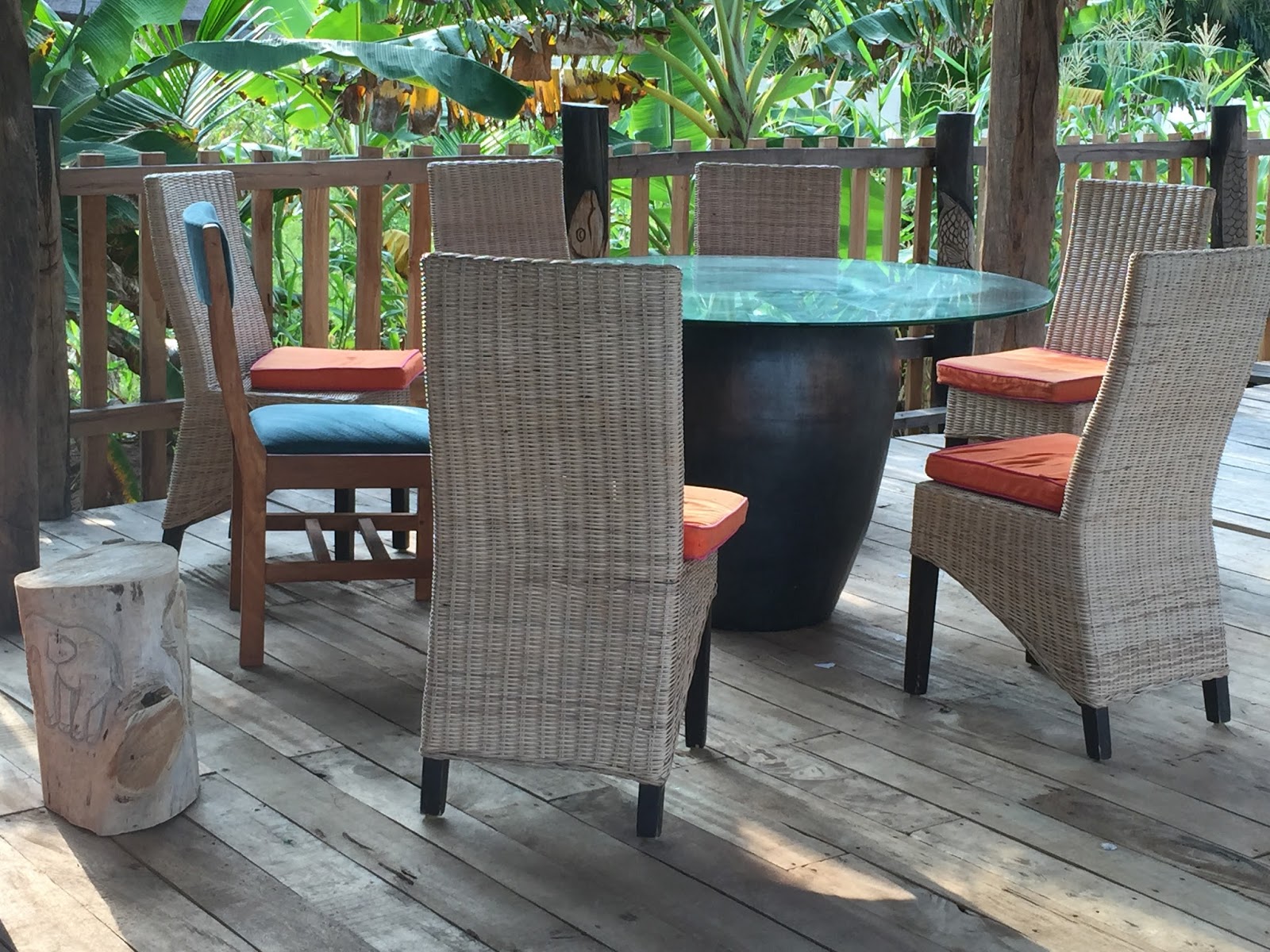 Et que dire de l’agréable terrasse, précédant les bungalows, où contempler, de longues heures durant (aussi bien aux premières lueurs du jour que lorsque le soleil tire sa révérence en toute fin d’après midi pour laisser progressivement place à l’obscurité de la nuit), la beauté si paisible de la nature environnante reste un plaisir indescriptible ?