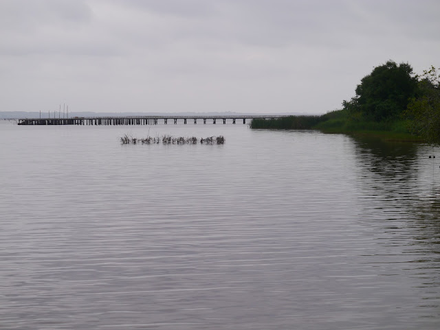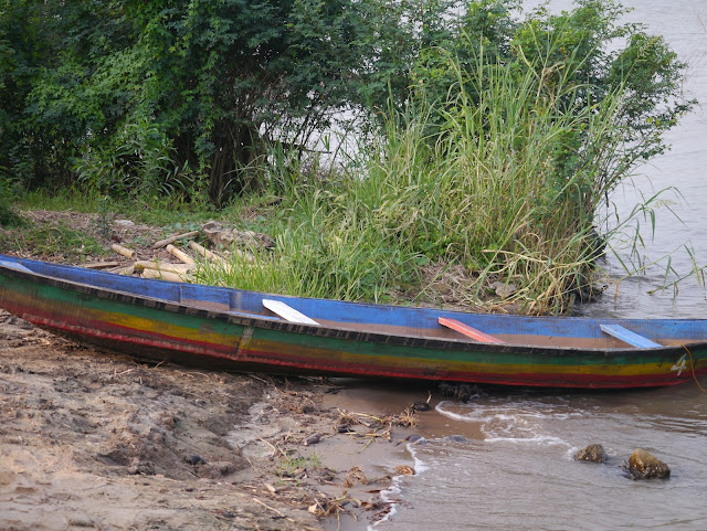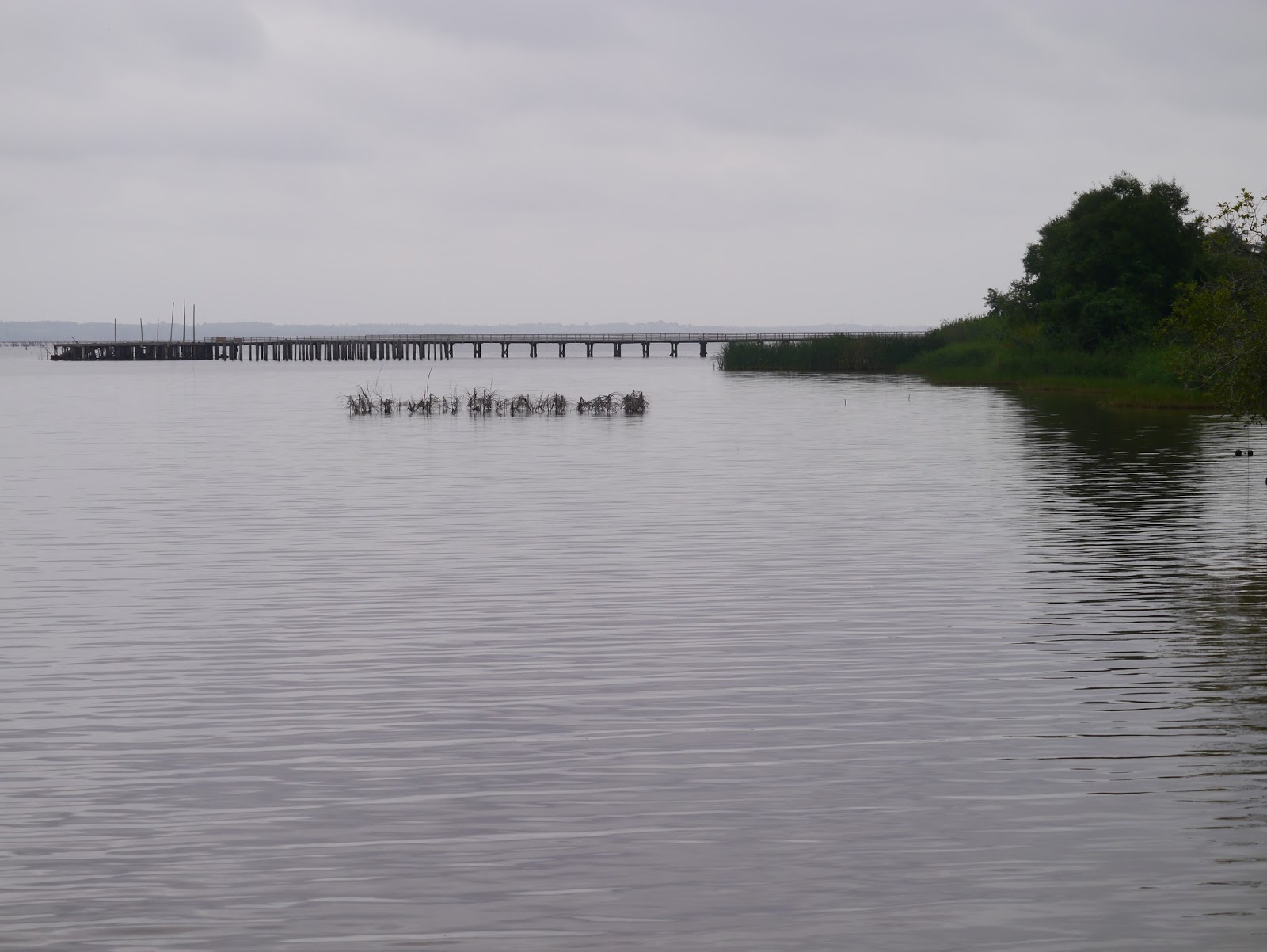 côté ouest du restaurant sur pilotis et barque utilisée pour les ballades sur le lac |