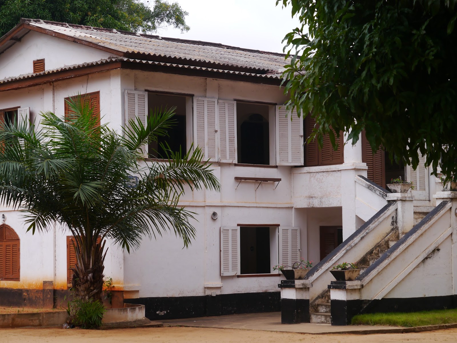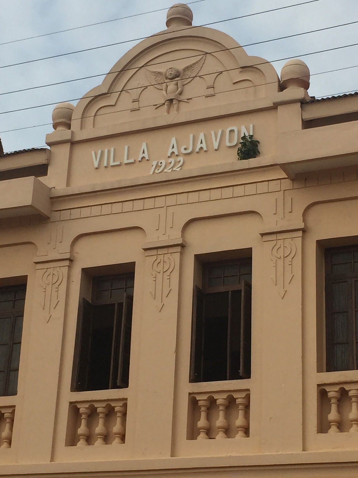 Mon regard s’est d’abord posé sur son joli fronton lequel, à l’instar de toutes les maisons coloniales construites sur la côte, porte le nom du propriétaire ainsi que la date de son édification (comme je vous l’avais déjà précisé dans l’article consacré à Aného, l’ancienne capitale togolaise).