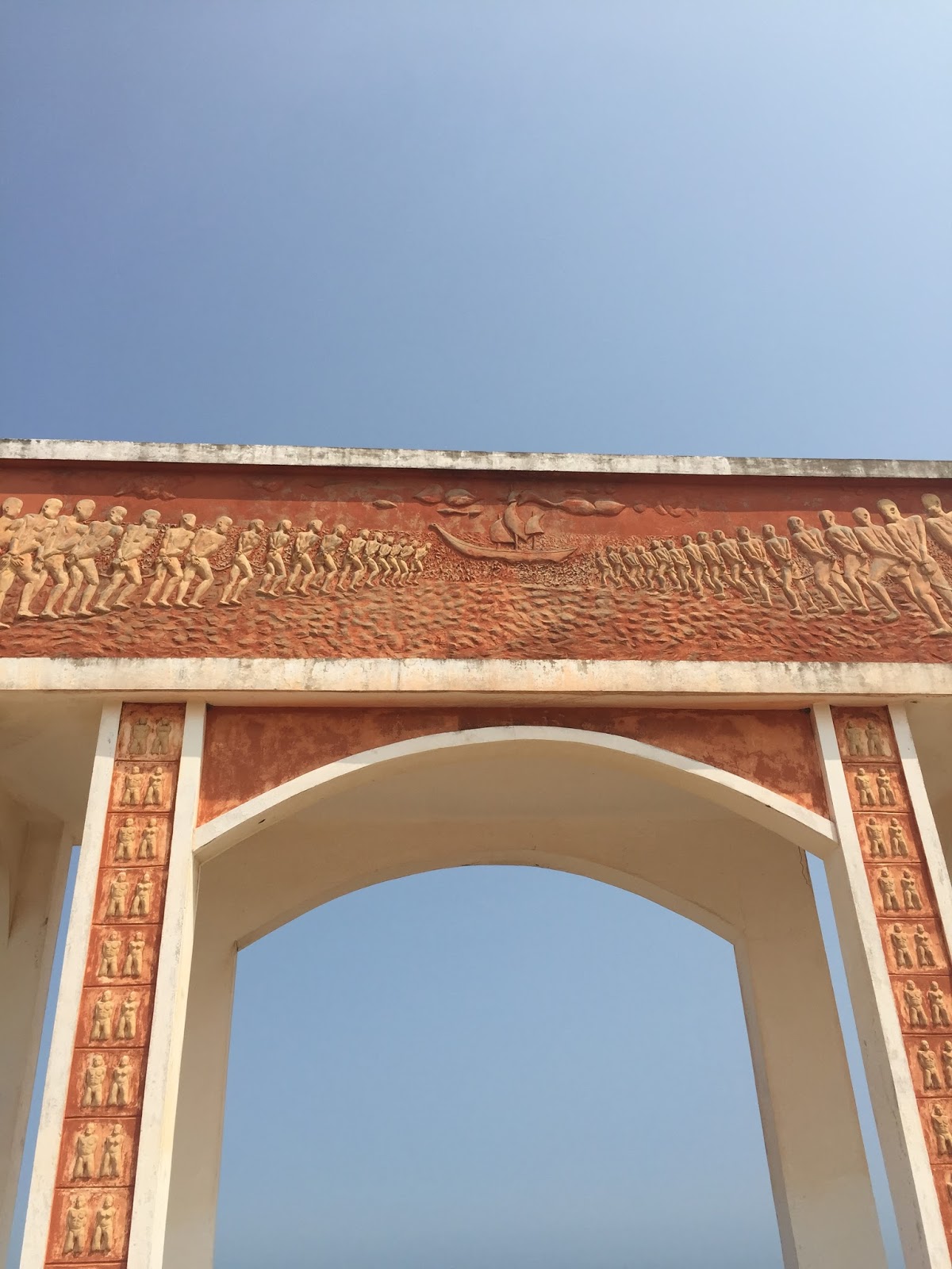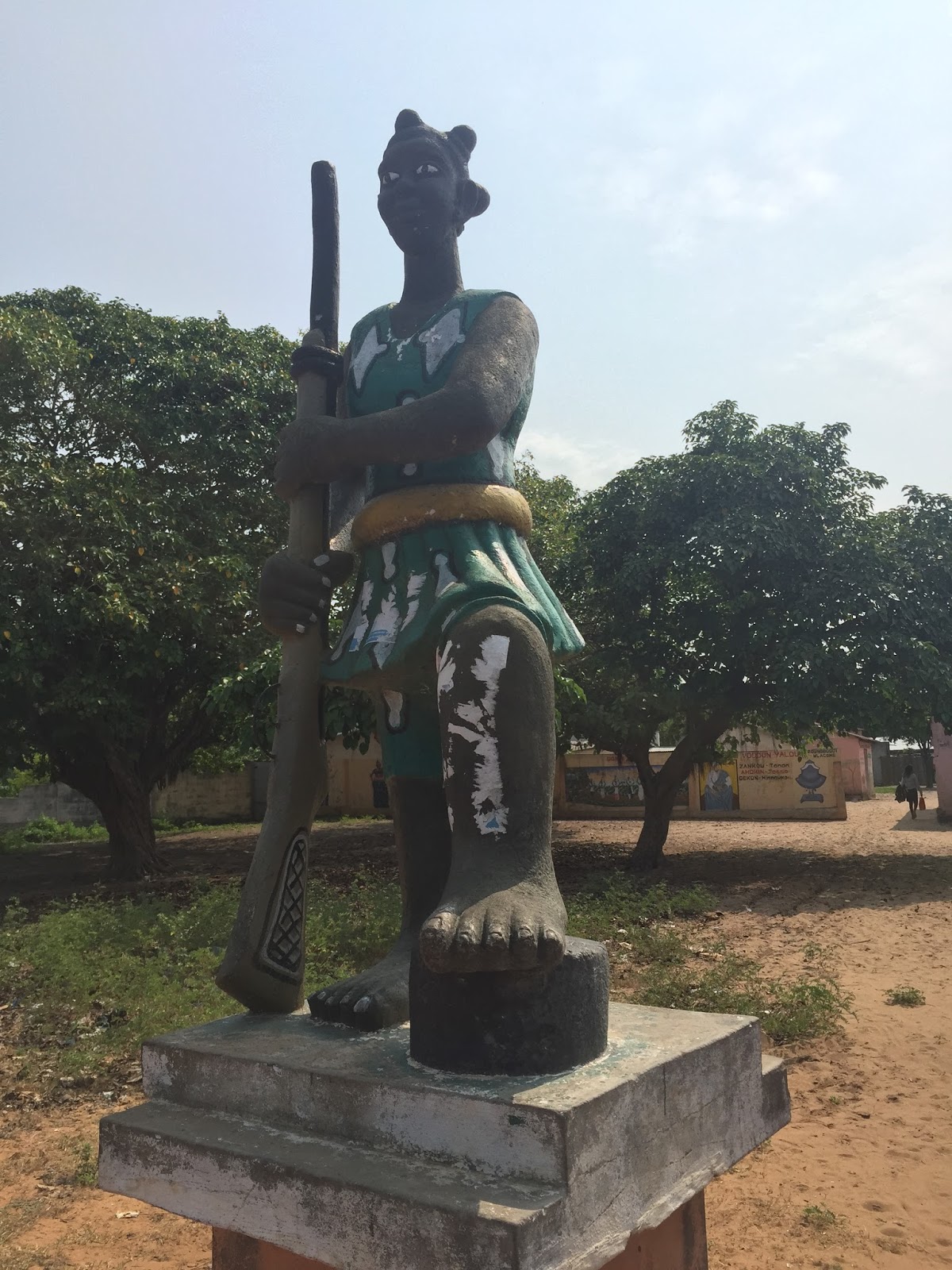 J’ai ainsi été impressionnée par ces grandes statues d’Amazones, ces symboles de dieux vaudou ainsi que ces représentations des rois d’Abomey (dont la très active participation  dans la traite ne souffre pas la discussion), se succédant de part et d’autre de la route jusqu’à à la monumentale porte de Non Retour, dernière étape  de la route des esclaves.