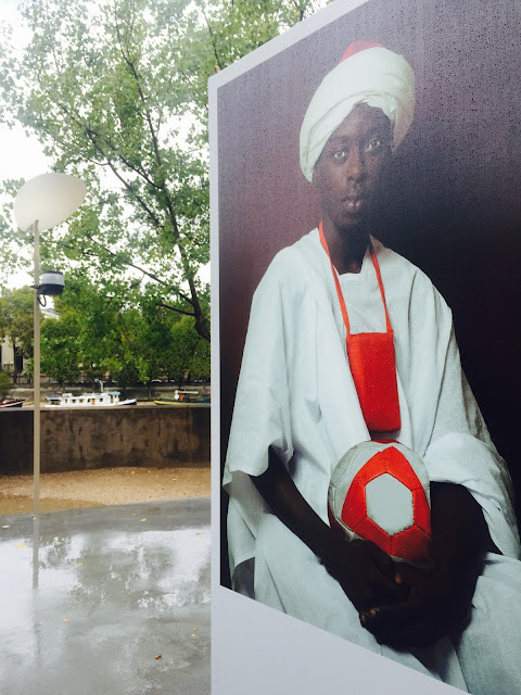 mes clichés de la série Diaspora d’Omar Victor Diop, pris, sous la pluie, à Photoquai, Quai Branly le 22 septembre 2015 Â