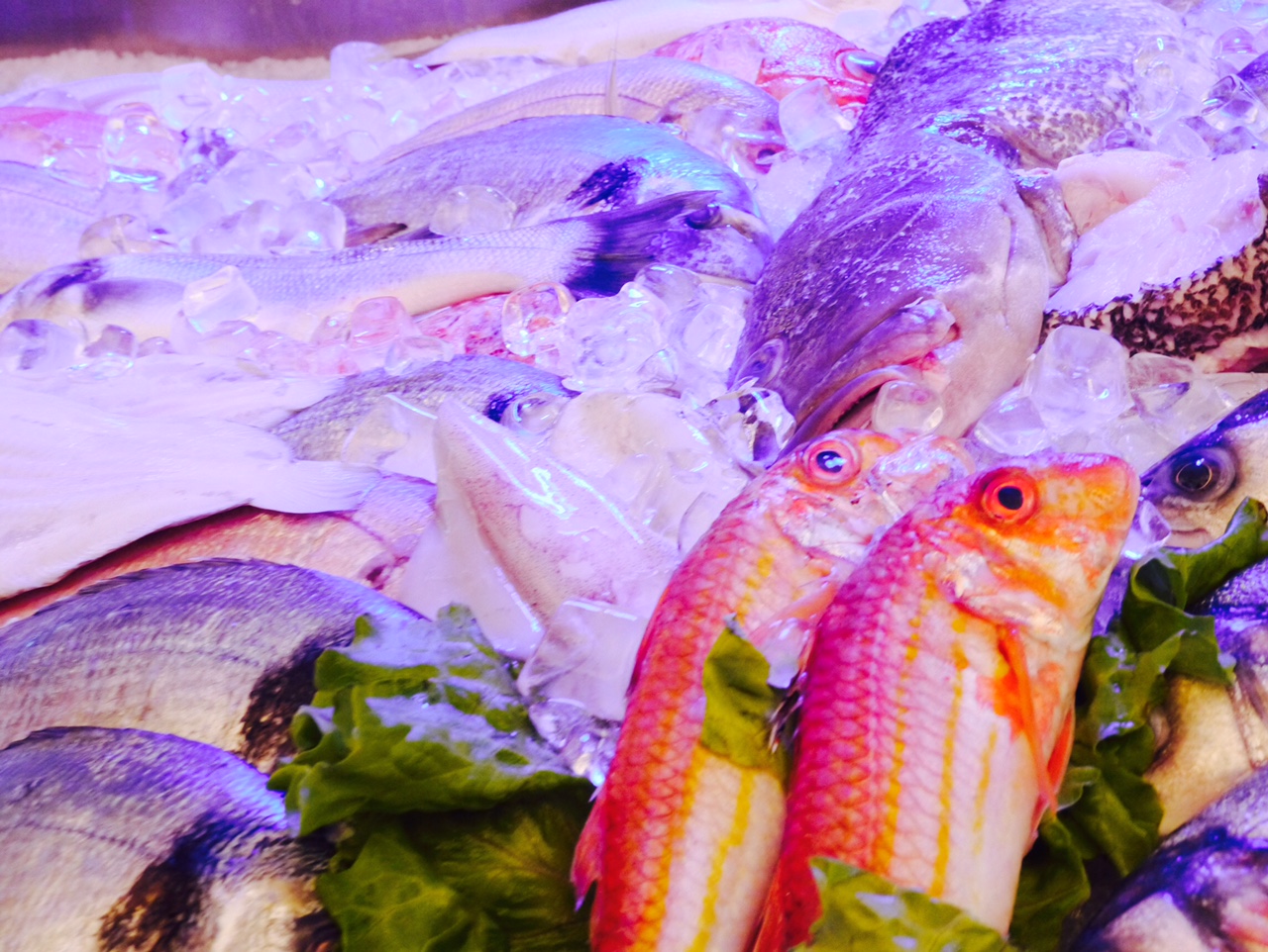 Huître, thon rouge, bar, seiche, crabe, saint jacques pétoncles, saumon et sardines  cuisinés de mille et une façon ( en sushi,en  tartare, en fritures, en salade, juste saisis,  grillés à la salamandre ou encore en gâteau) et assaisonnés avec une variété d’épices et de condiments dont certains (à l’instar du yuzu) en provenance d’Asie.