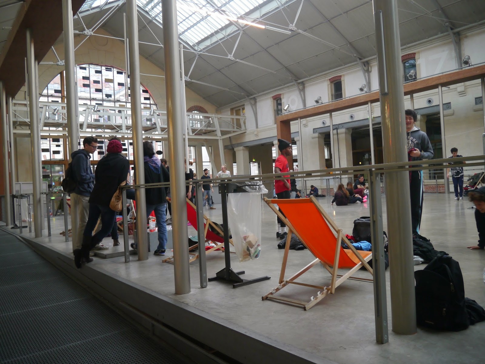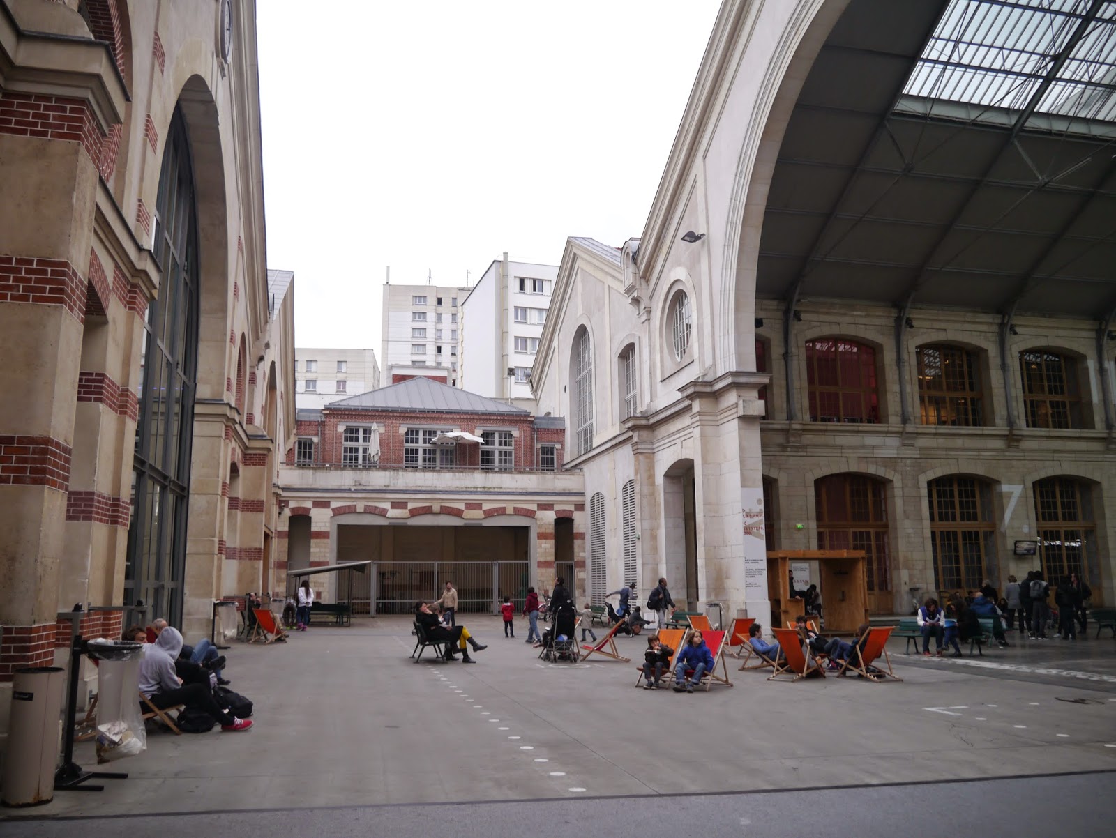 Mais le 104 est également un lieu ouvert à tous comme j’ai pu le constater par moi même : une très grande librairie,  des espaces où les jeunes viennent faire du théâtre ou danser (d’ailleurs beaucoup de groupes de hip hop et de ragga répétaient cette après midi) ou encore une cour extérieure où de nombreux transats et bancs permettent de se reposer de façon agréable 🙂