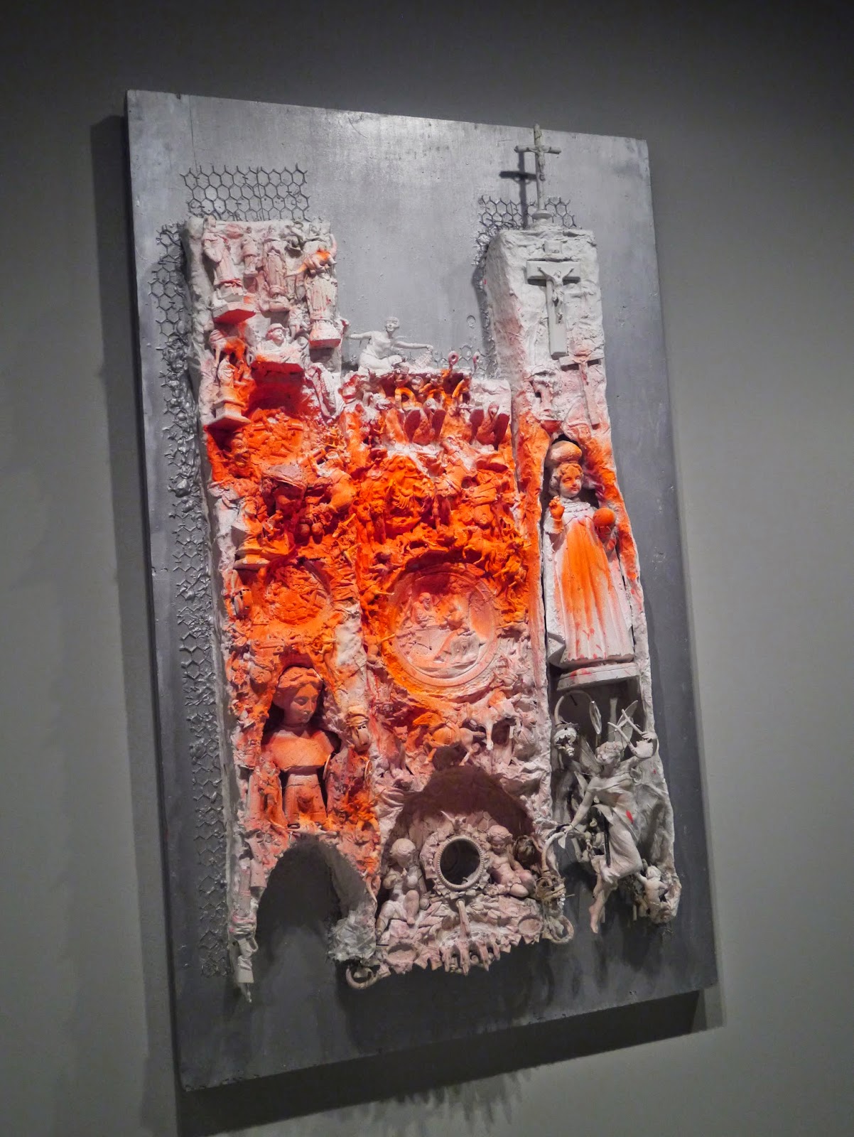 En effet, elle matérialise son rejet de l’Eglise catholique, dans laquelle elle a pourtant été élevée, par une série de croix, notamment Leto avec des portes jarretelles, et tableaux autels subversifs. Â