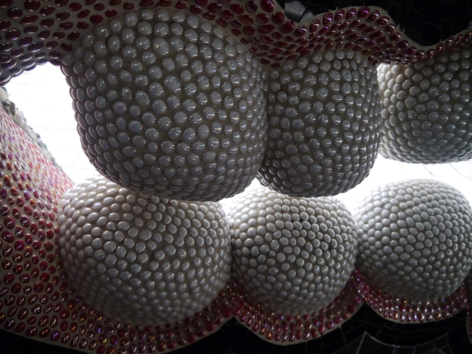 Je dois dire que « l’esprit mosaïque » de Gaudi  se reconnait immédiatement dans cette tête de mort, inspirée des traditions amérindiennes, de Niki de Saint Phalle.