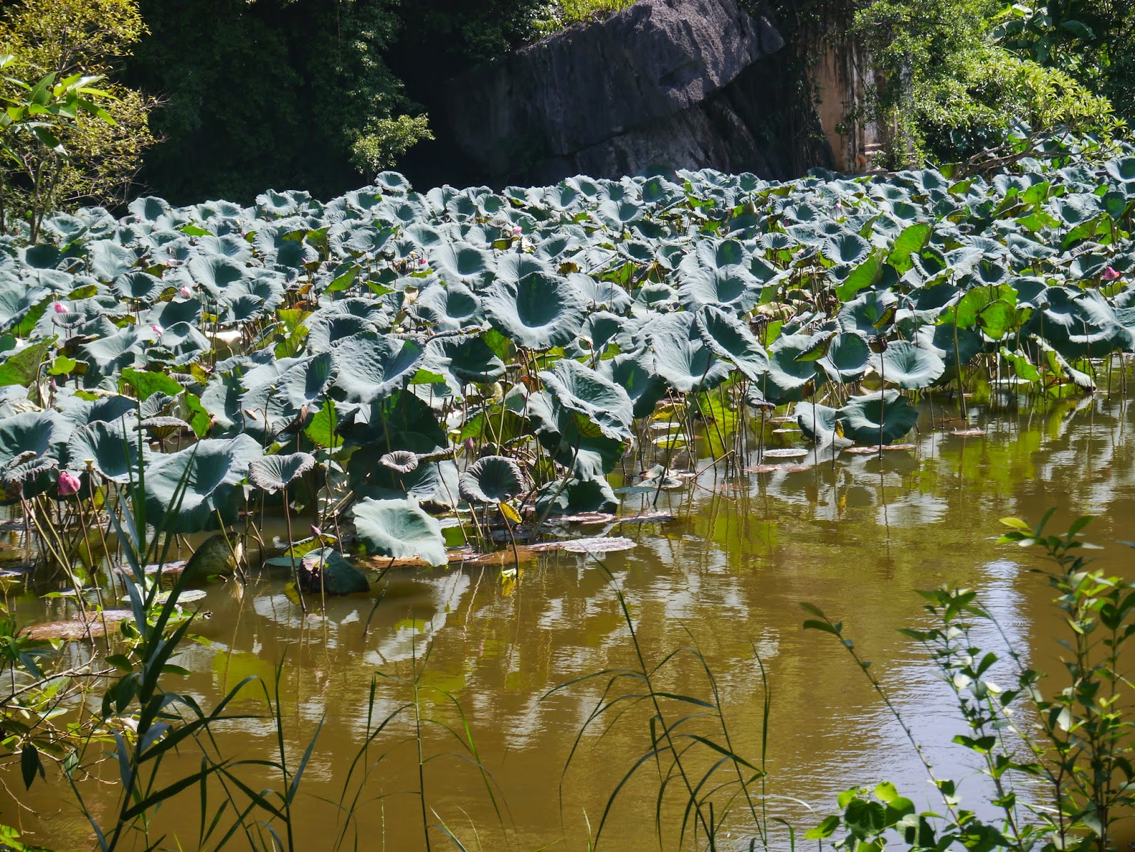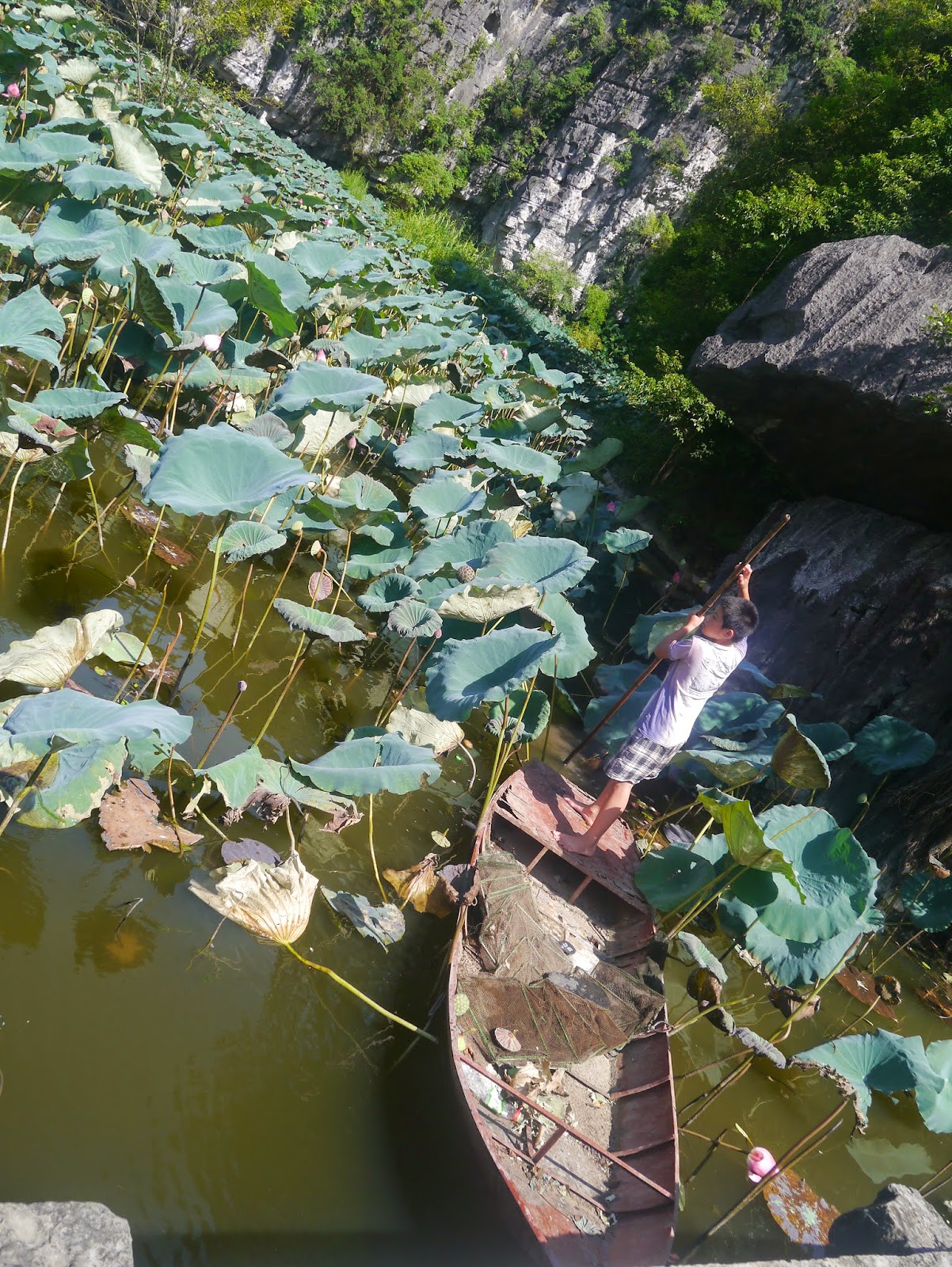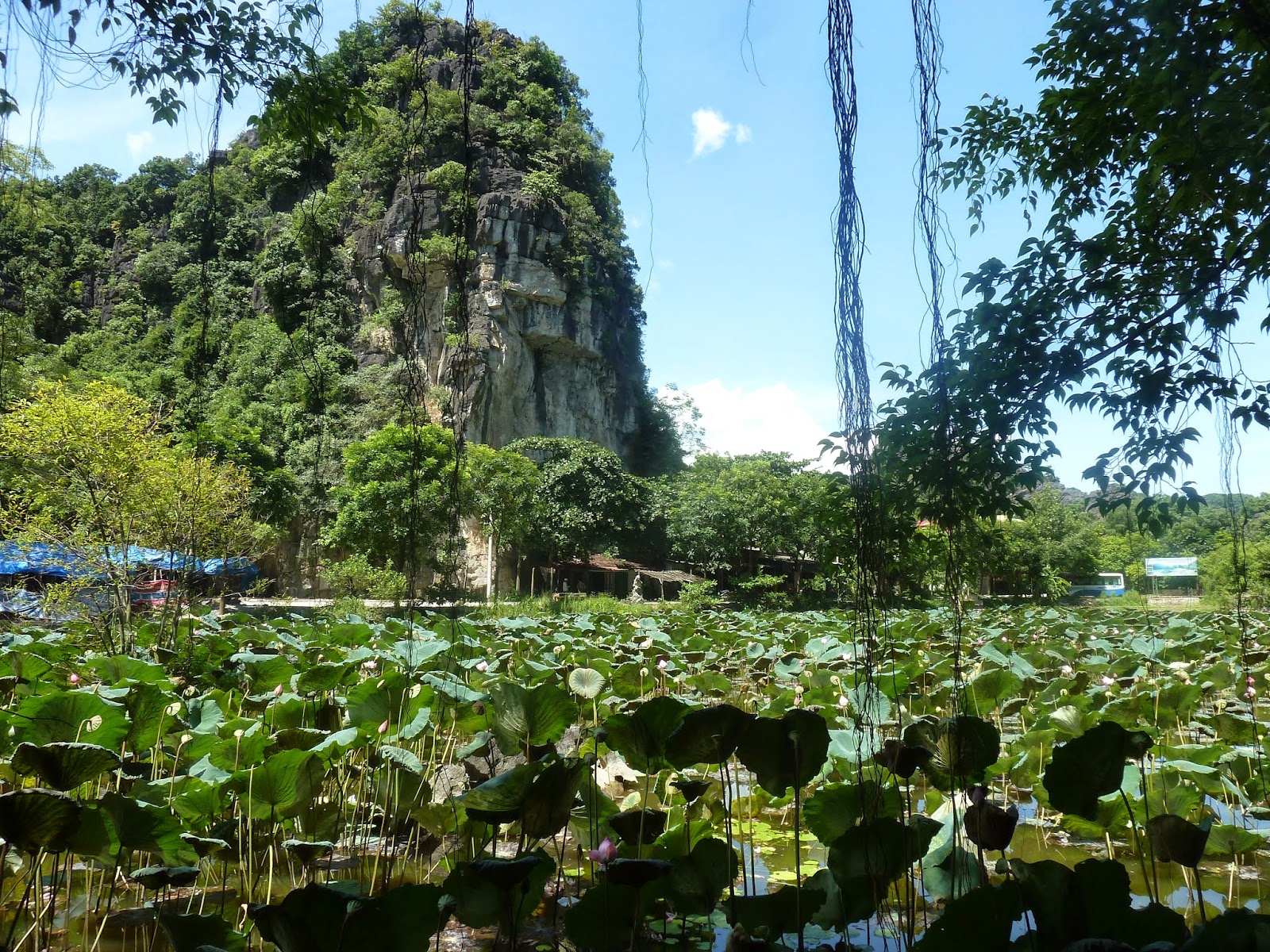 Elle m’a d’abord surprise par le magnifique paysage qui l’entoure : montagnes, rizières, nature verdoyante, omniprésence de l’eau, multitude de nénuphars et de lotus ainsi que les incontournables rochers karstiques.