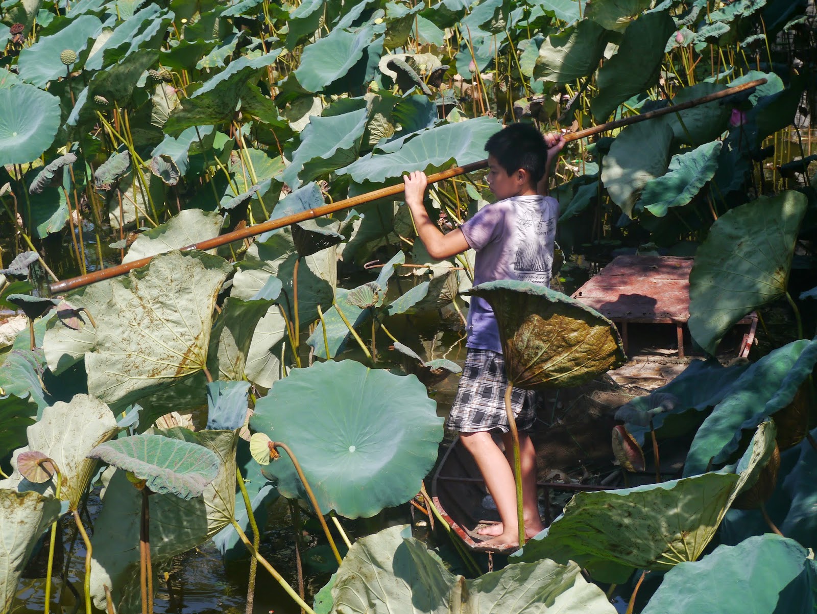 Ce dernier, se tenant sur une petite embarcation, cueillait les graines des fleurs de lotus.
