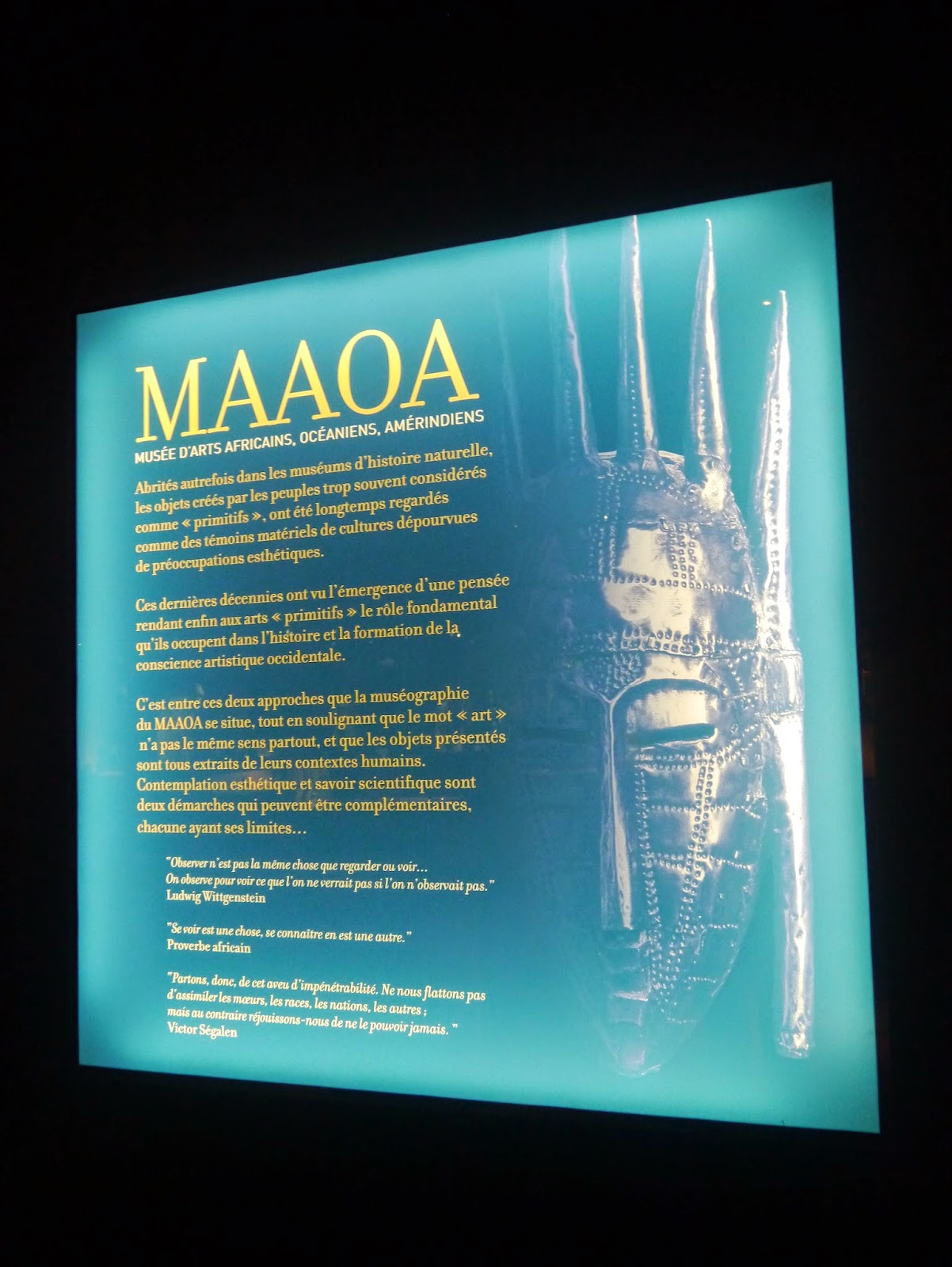 En feuilletant un guide touristique, juste avant d’embarquer, dans un relais de l’aéroport d’Orly, je suis tombée sur le MAAOA, le Musée d’arts Africains, Océaniens et Amérindiens, abrité par la Vieille Charité.