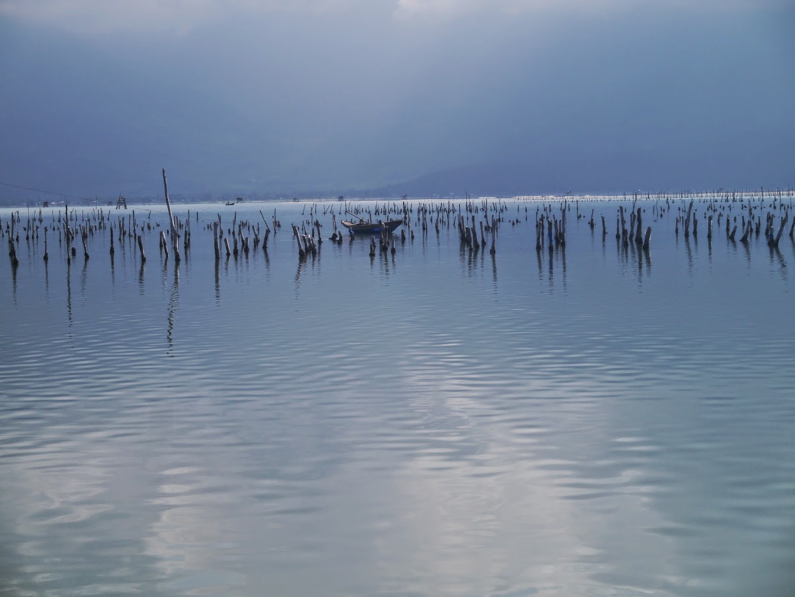 Autant vous dire que j’ai immédiatement été subjuguée par ce panorama enchanteur : rizières à perte de vue, barques amarrées ça et là , petites cabanes  au milieu de l’eau et pieux en bois (des installations ostréicoles).