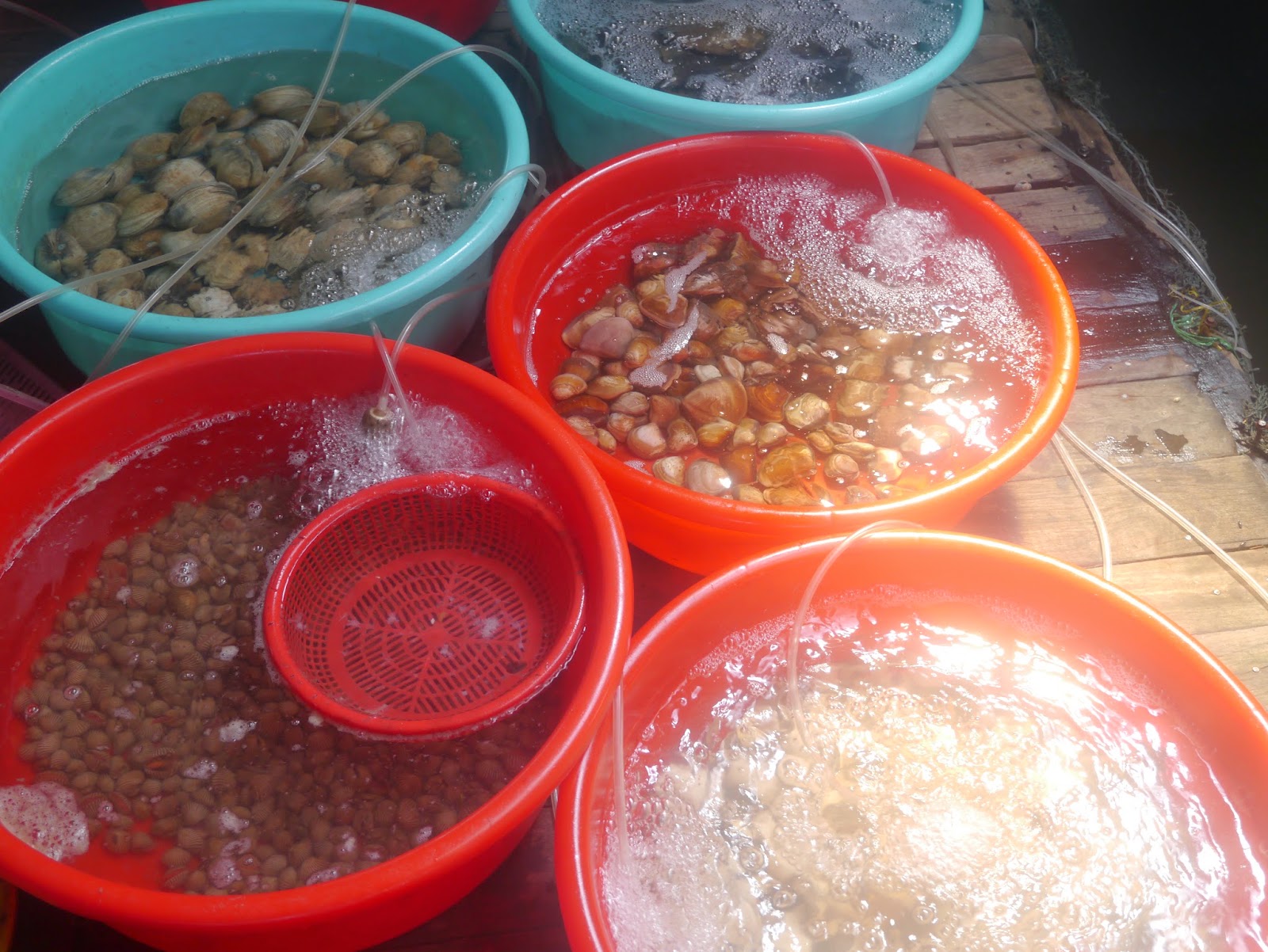 Le ravissement des sens s’est poursuivi pour moi, au moment du déjeuner, lorsque je me suis attablée dans un restaurant sur pilotis, à la clientèle locale (pour moi gage de la qualité des mets y étant préparés), où étaient, exclusivement servis, poissons et fruits de mer, fraîchement pêchés.