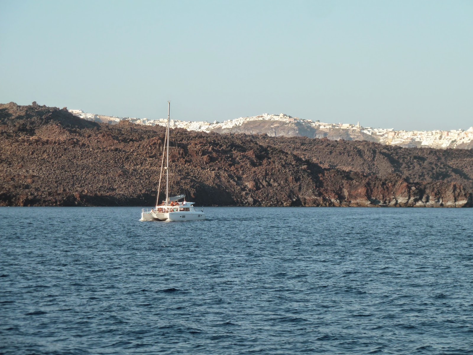 S’il y’a bien une visite incontournable que je vous recommande à Santorin c’est bien celle là : une promenade de quelques heures, de préférence dans l’après-midi, en catamaran dans la caldeira.