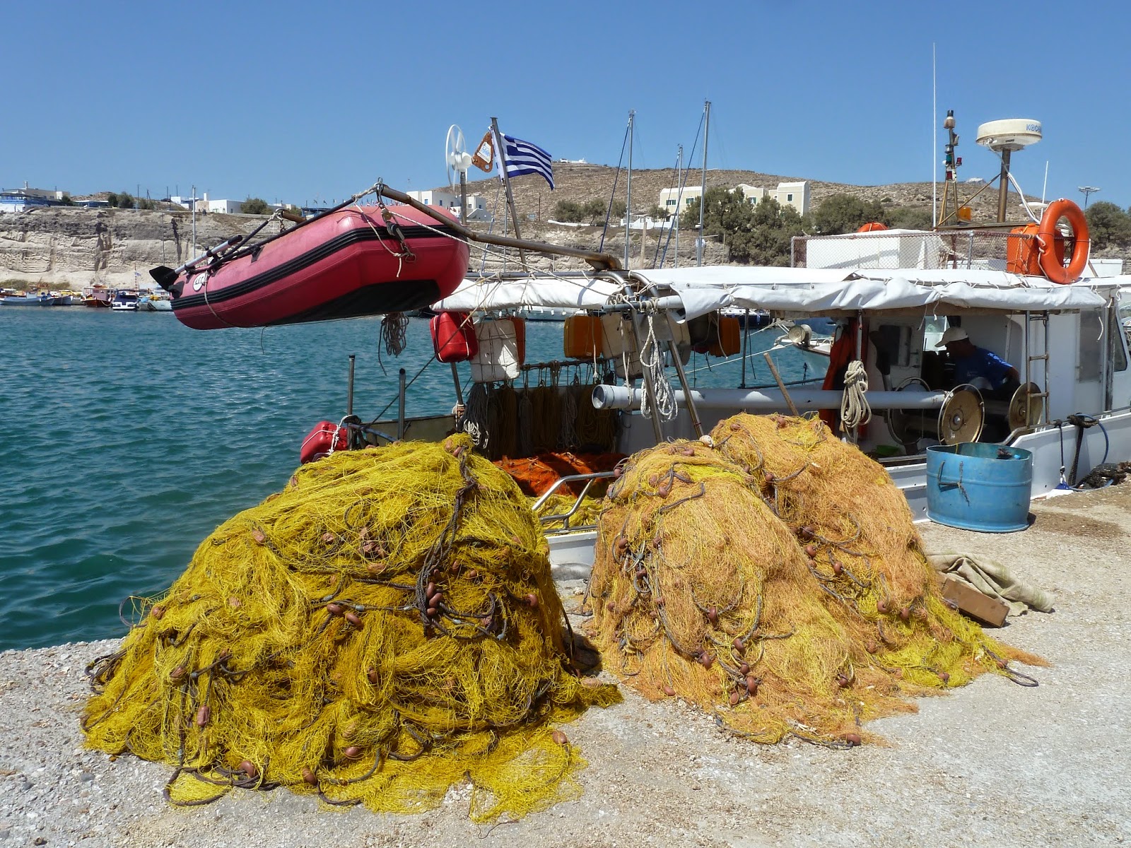 Sortir du port, en ce mois d’août où l’île était prise d’assaut par des touristes désireux, comme moi, de visiter la Reine des Cyclades ainsi que des « newly wed » attirés par le romantisme fou de l’île ne fut pas chose aisée.