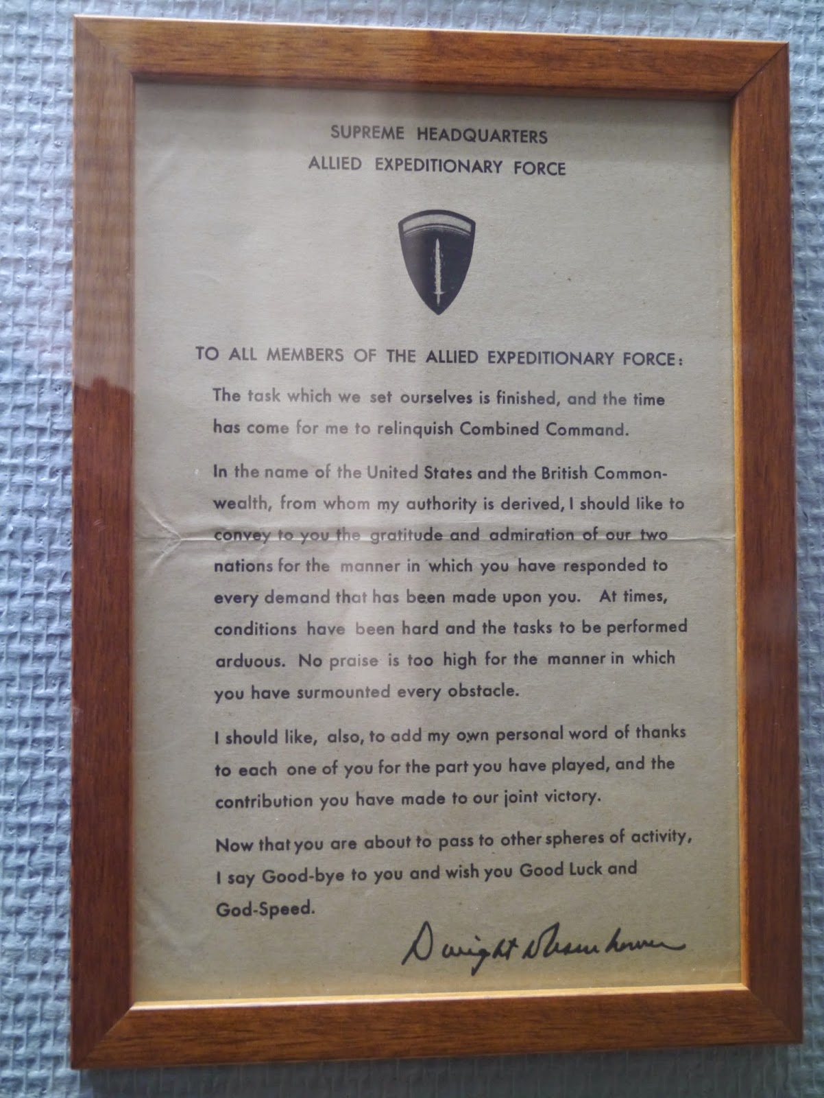 Ainsi il dit  » Je pense qu’il est particulièrement symbolique que la reddition ait été signée au cÅ“ur de la France, ce pays qui a tant souffert, ce pays où nous avons débarqué en juin dernier et dont les forces armées et les mouvements de Résistance nous ont tant aidés«