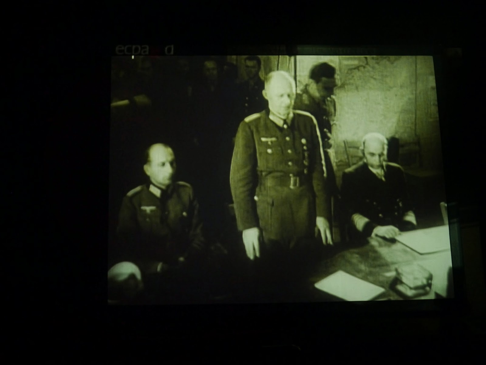 Cette fois, c’est le maréchal Keitel qui signe l’acte de capitulation, reçu par le maréchal soviétique Joukov, en présence également du Maréchal de Lattre de Tassigny, représentant de la France.