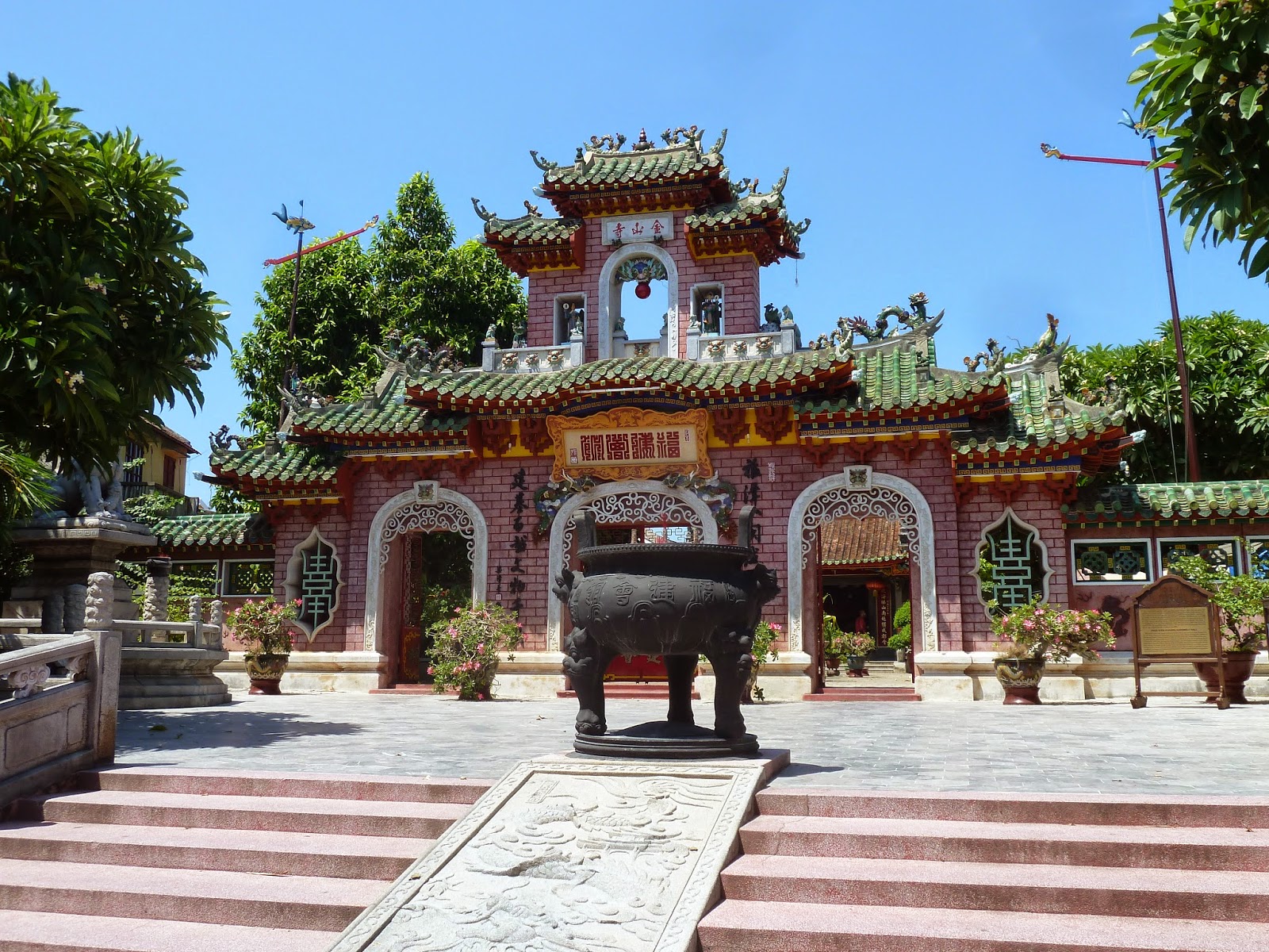 La première, celle de Quang Dong, également appelée maison commune de la congrégation de Canton, est située à proximité du pont japonais.
